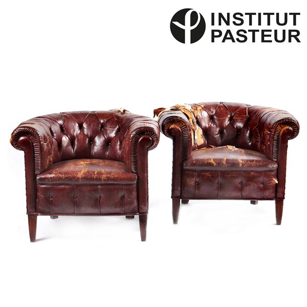 in cuoio rosso capitonnè, divano L168xP77xH68, poltrone cm L85xP70xH68, difetti