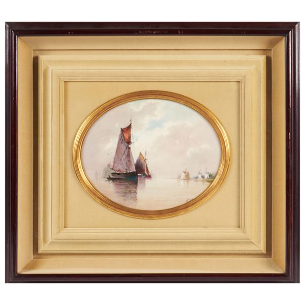 coppia di dipinti ovali su porcellana, cm 23x20 e cm 19x23, firmati