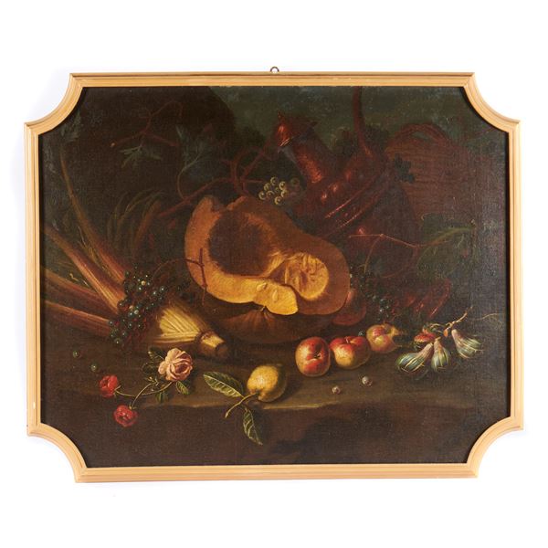 coppia di dipinti a olio su tela entro cornici sagomate, cm 94x122