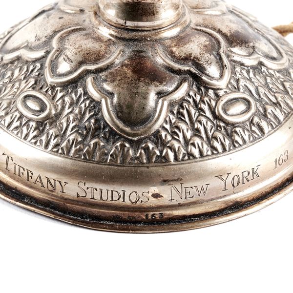 in argento cesellato, fusto conico, alla base circolarte reca inciso TIFFANY STUDIO NEW YORK 163