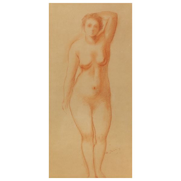 sanguigna su cartone, cm 61x36,5, firmato in basso a destra
