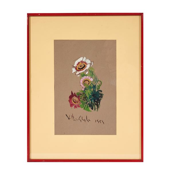 due disegni su carta, cm 37,5x24,5, firmati e datati 1954