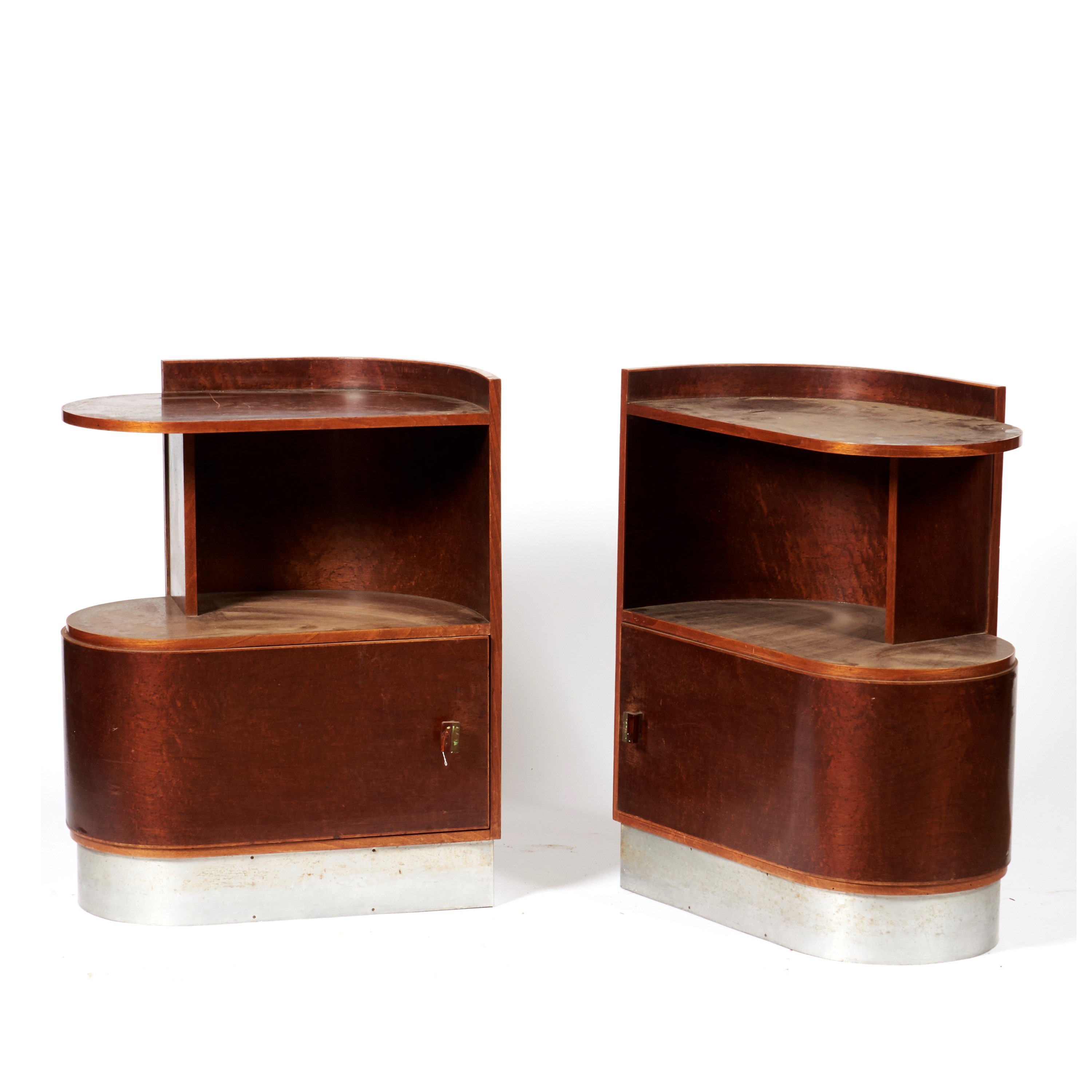 in radica di noce, sagomati, con uno sportello e due ripiani, cm L58xP36xH76