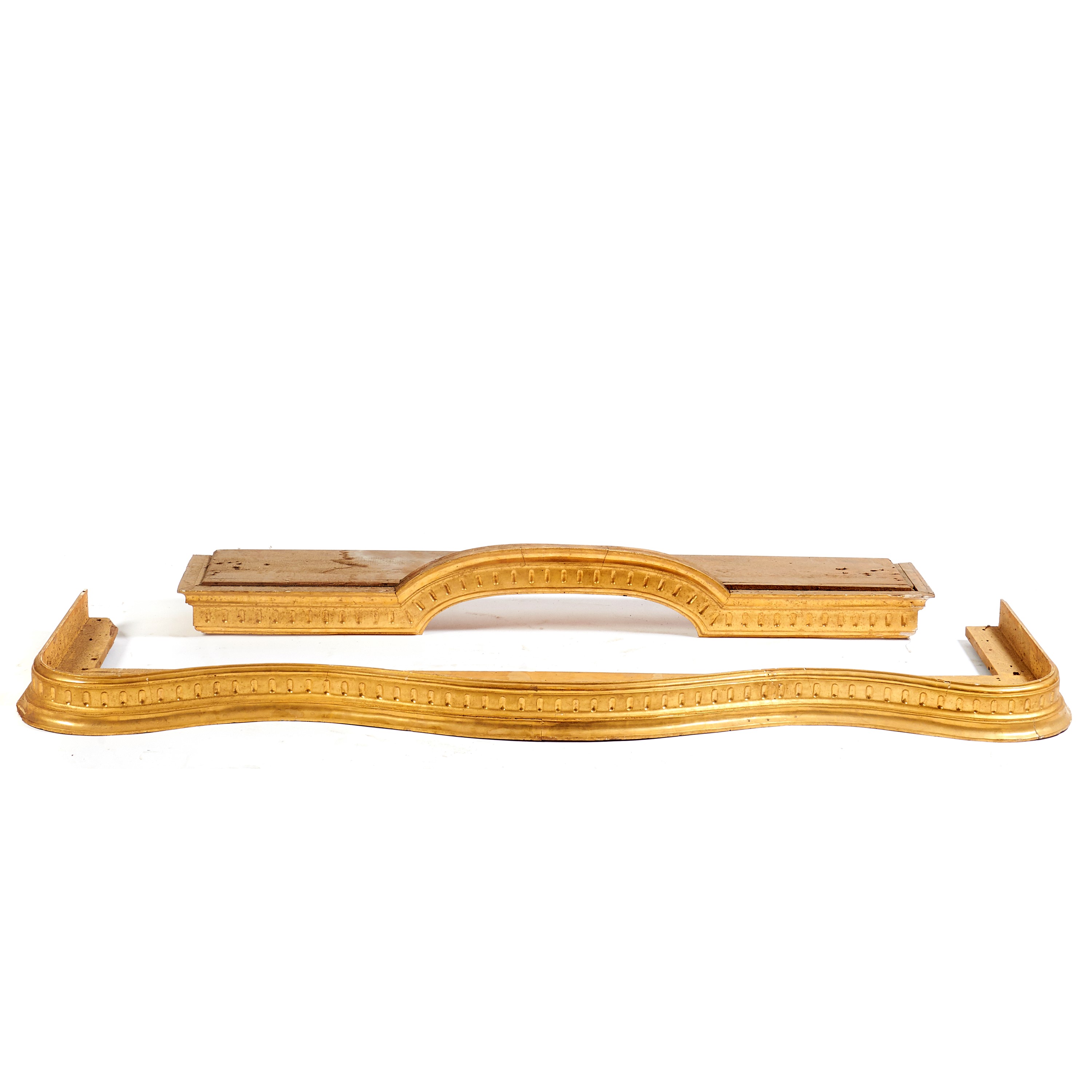 in legno intagliato e dorato, cm L190xP29xH10,5 e cm L148,5xP23xH19