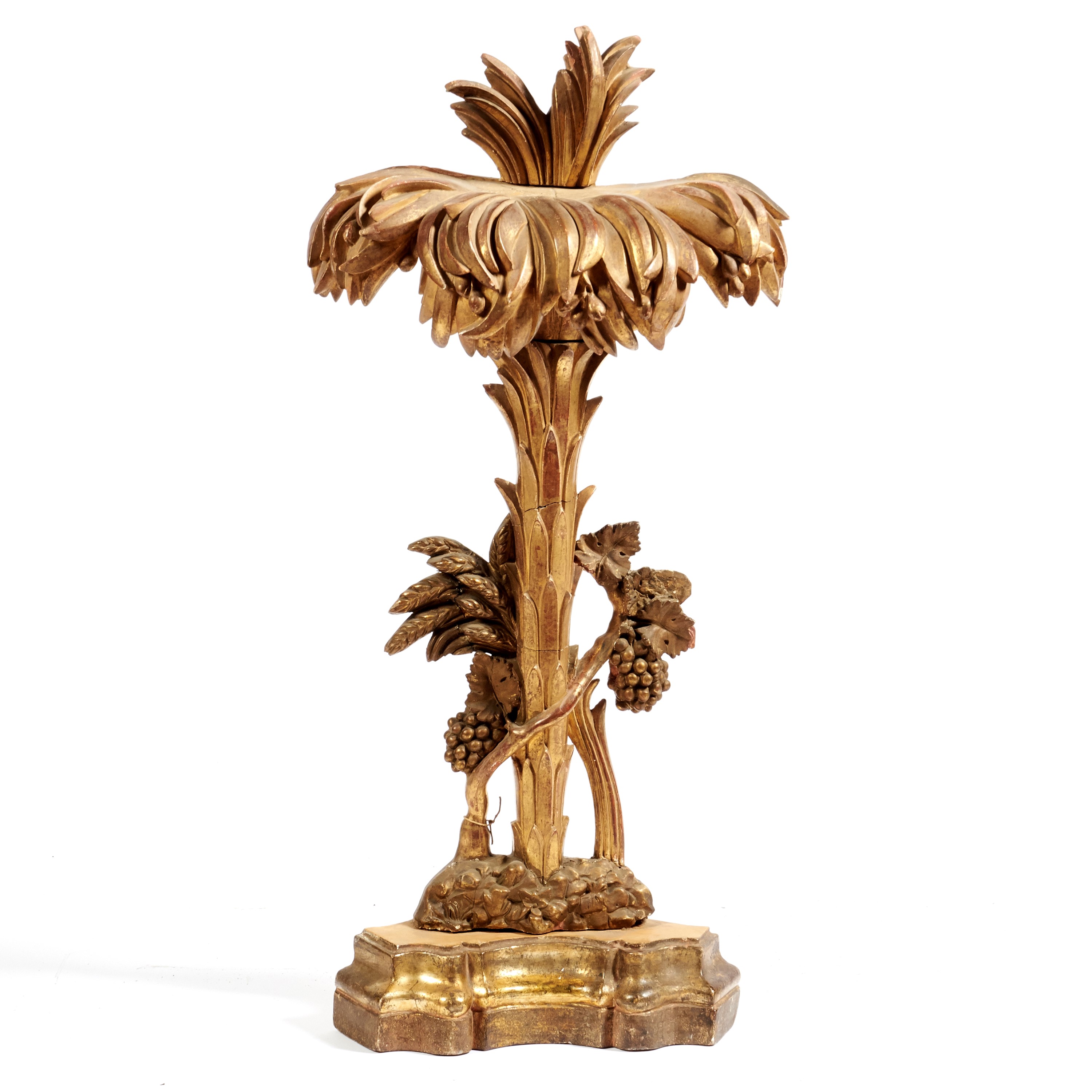 in legno intagliato e dorato a forma di palma, cm L49xP23xH108