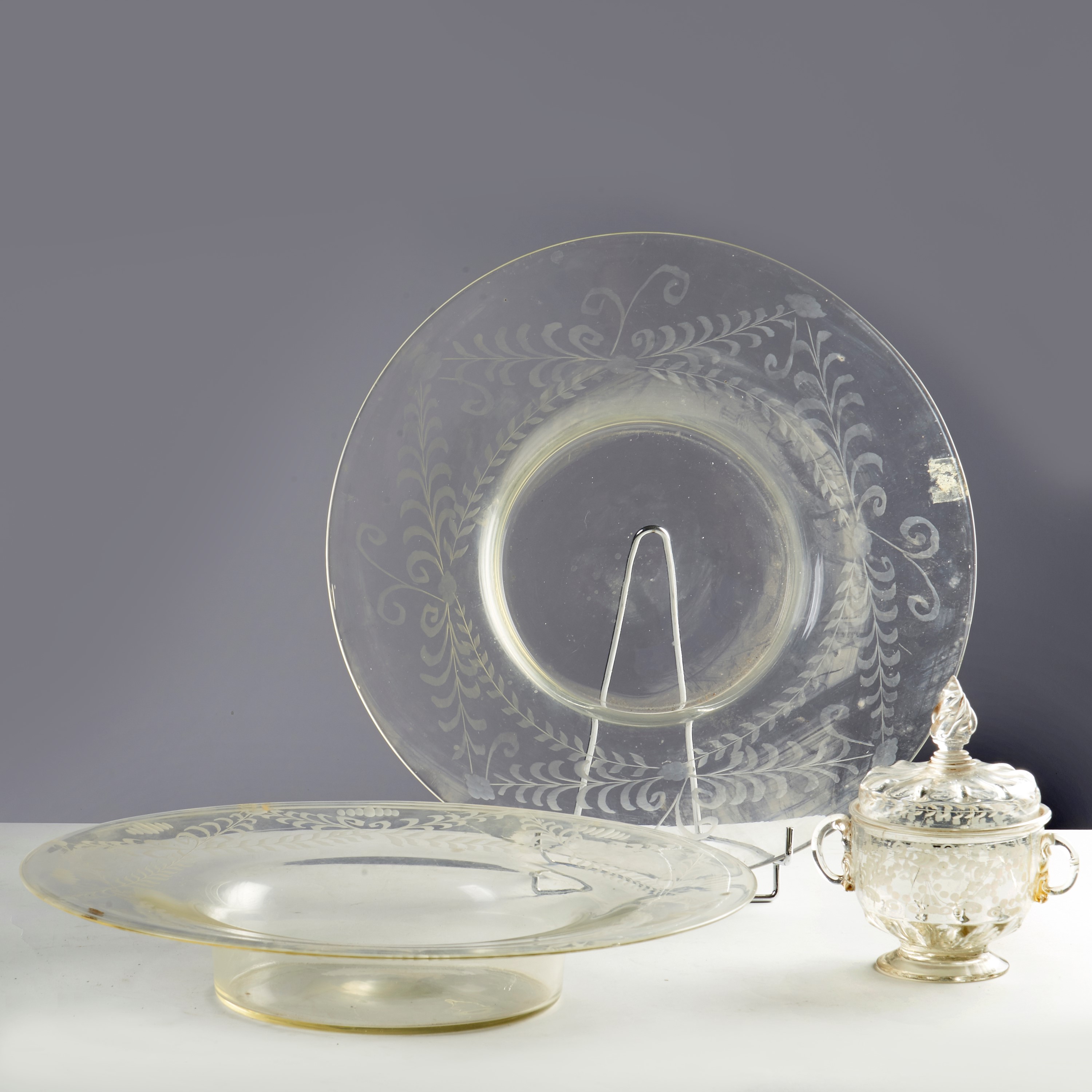 in vetro incolore con decoro sulla tesa, diam. cm 41