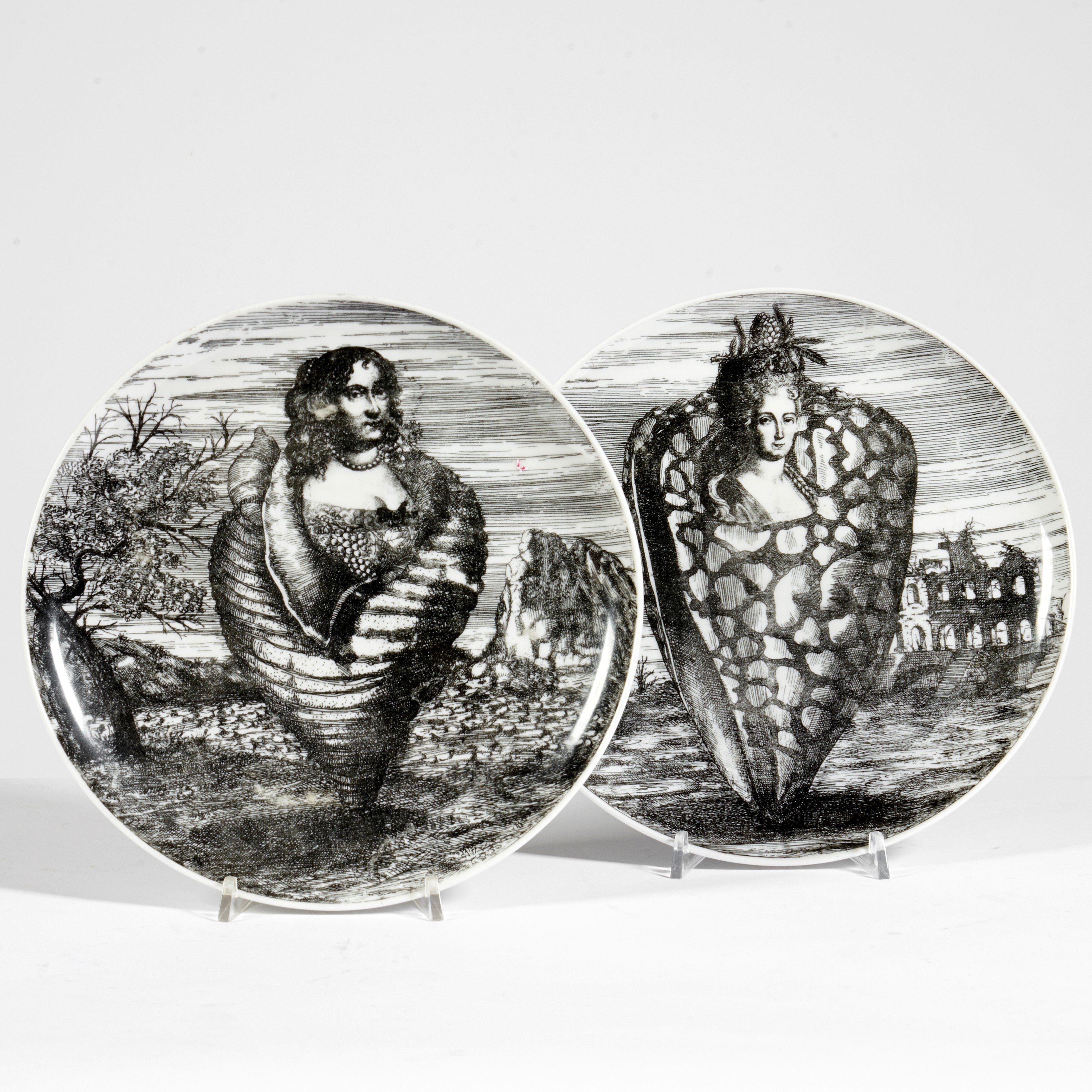 coppia di piatti in porcellana monocroma, diam. cm 26