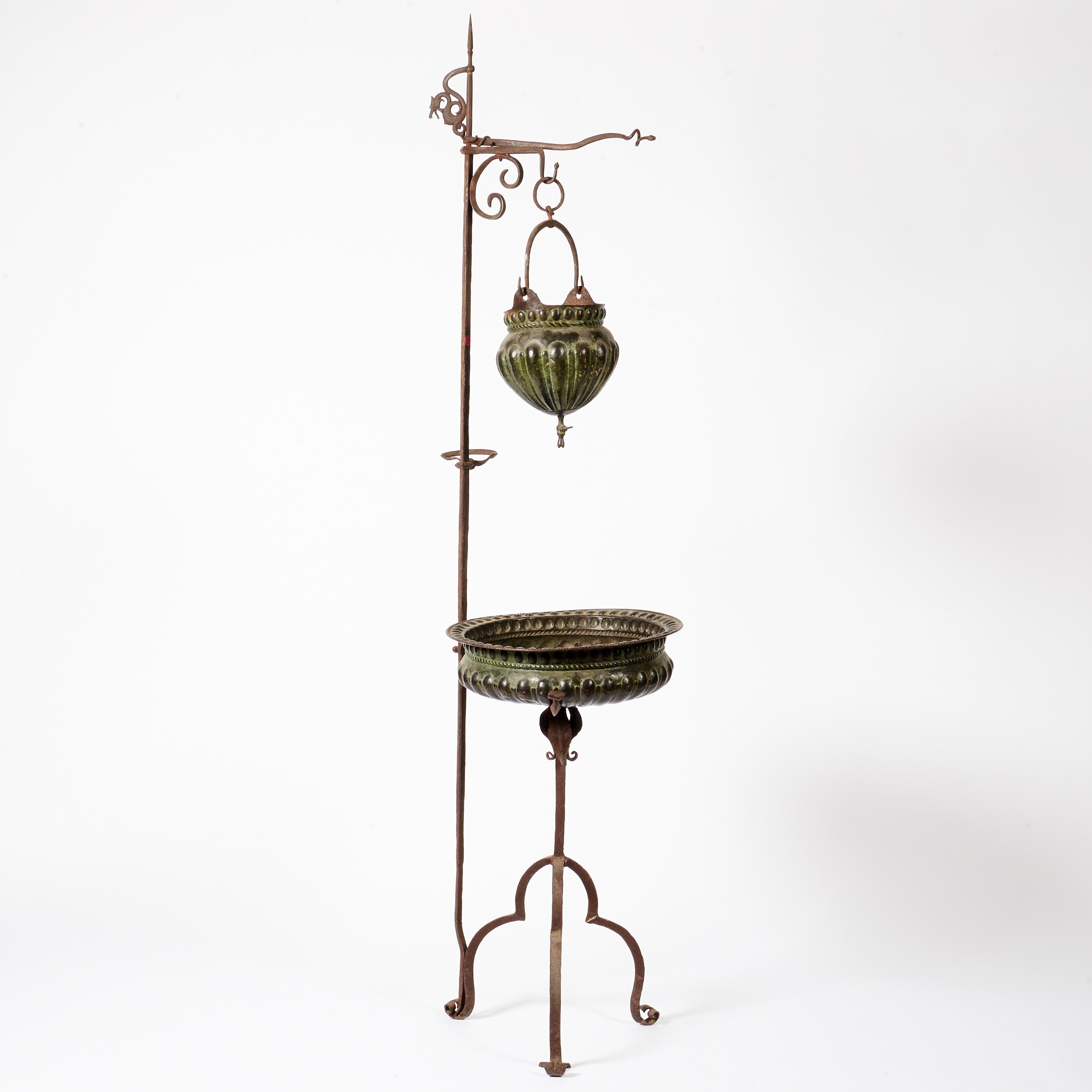 in ferro battuto con bacile e secchiello in rame, cm 45x187, mancanze