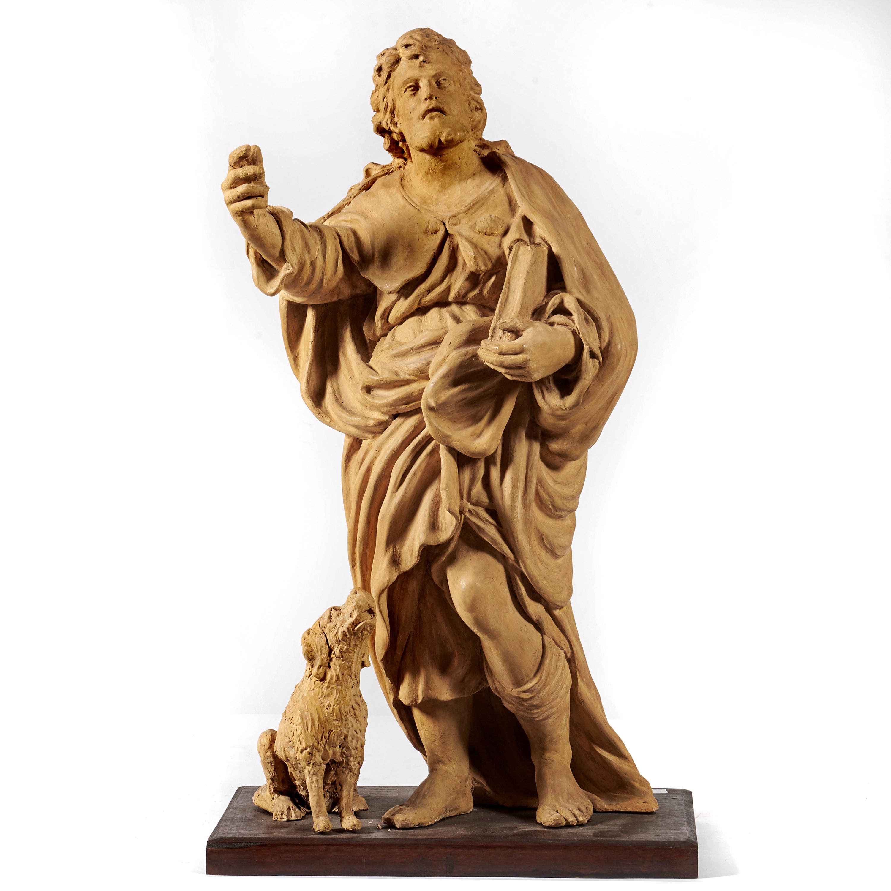 scultura in terracotta, cm 36x70, base in legno alt. cm 85