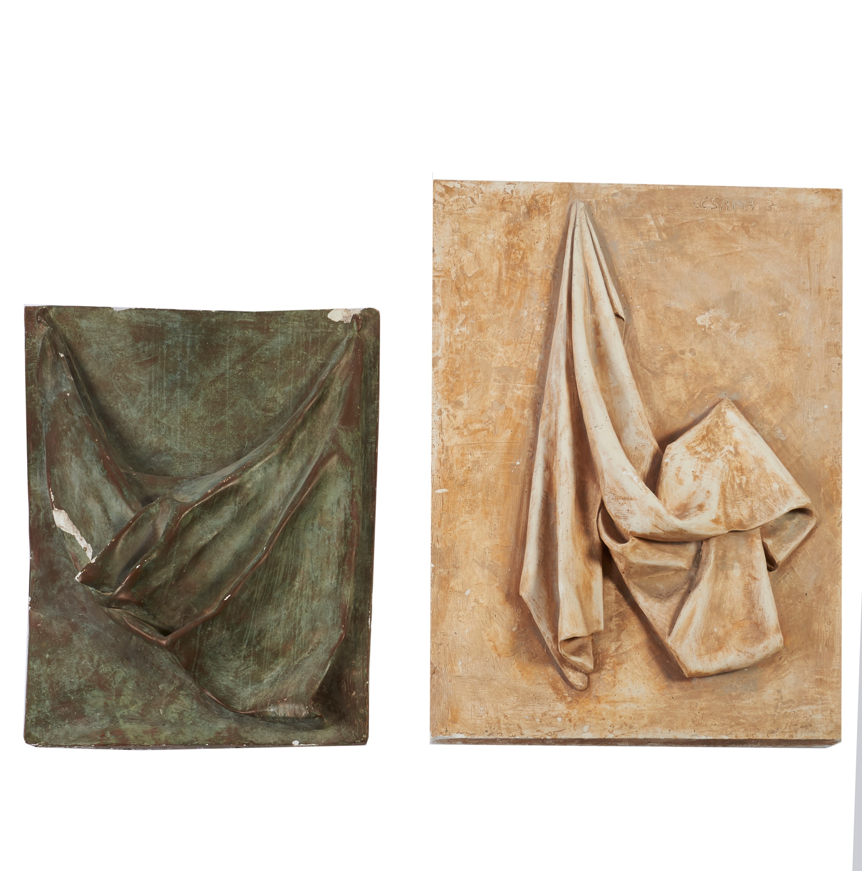due calchi in gesso, cm 86x60, firmato Cesana e cm 52x67, da restaurare