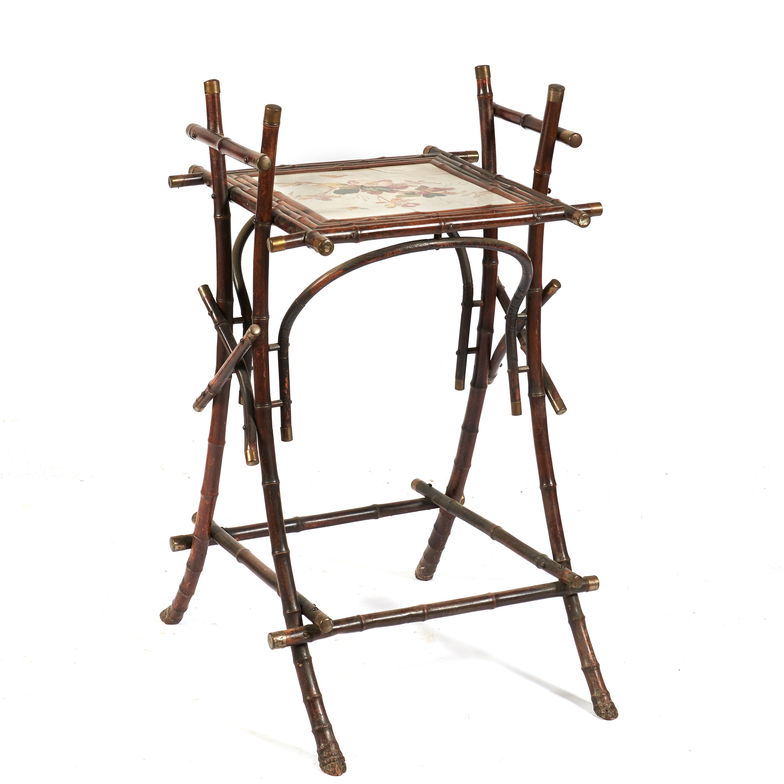 gambe a canne di bambù, piano in ceramica con decoro a tralci floreali, cm L49xP48,5xH88