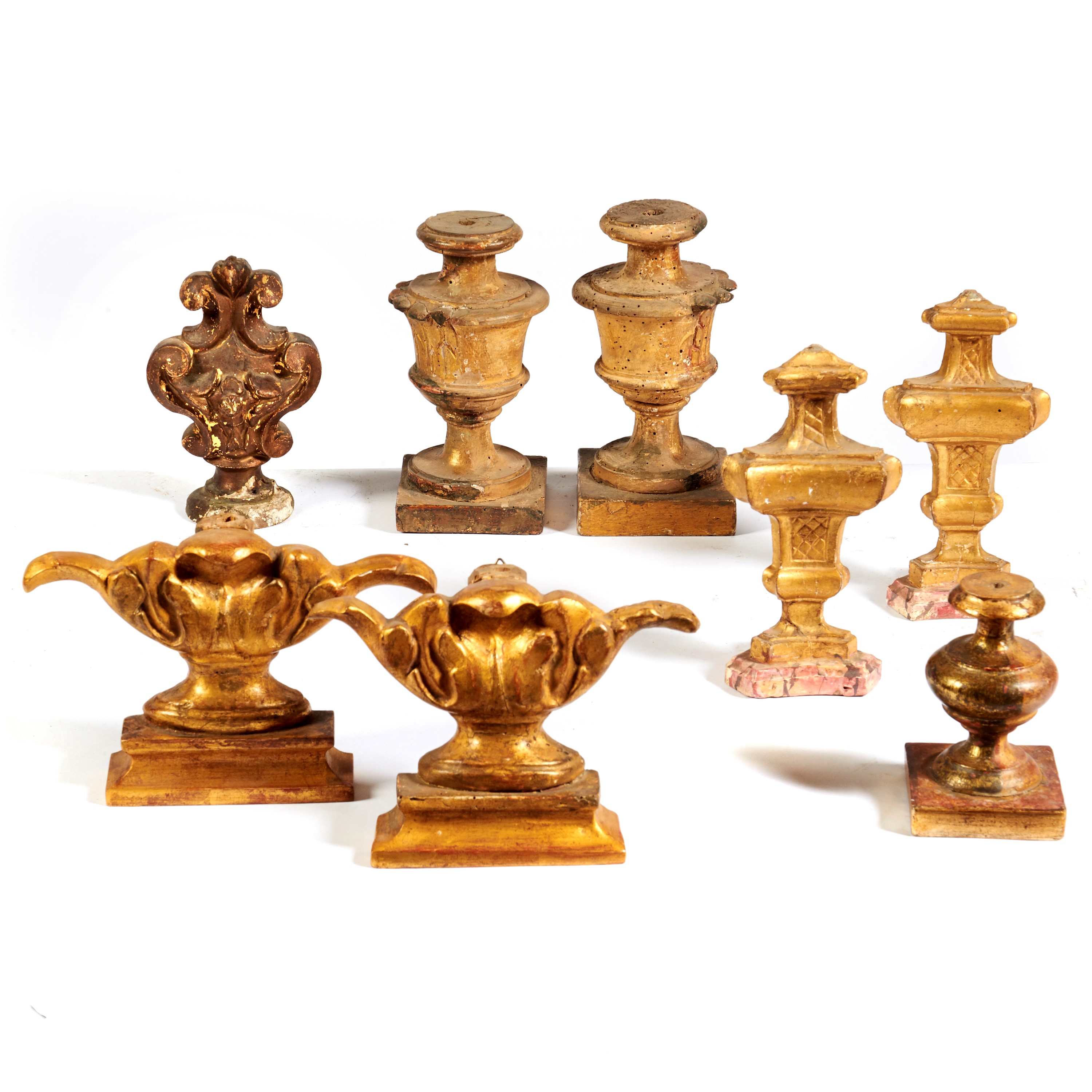 in legno intagliato e dorato, alt cm 20 (4) e alt. cm 12,5