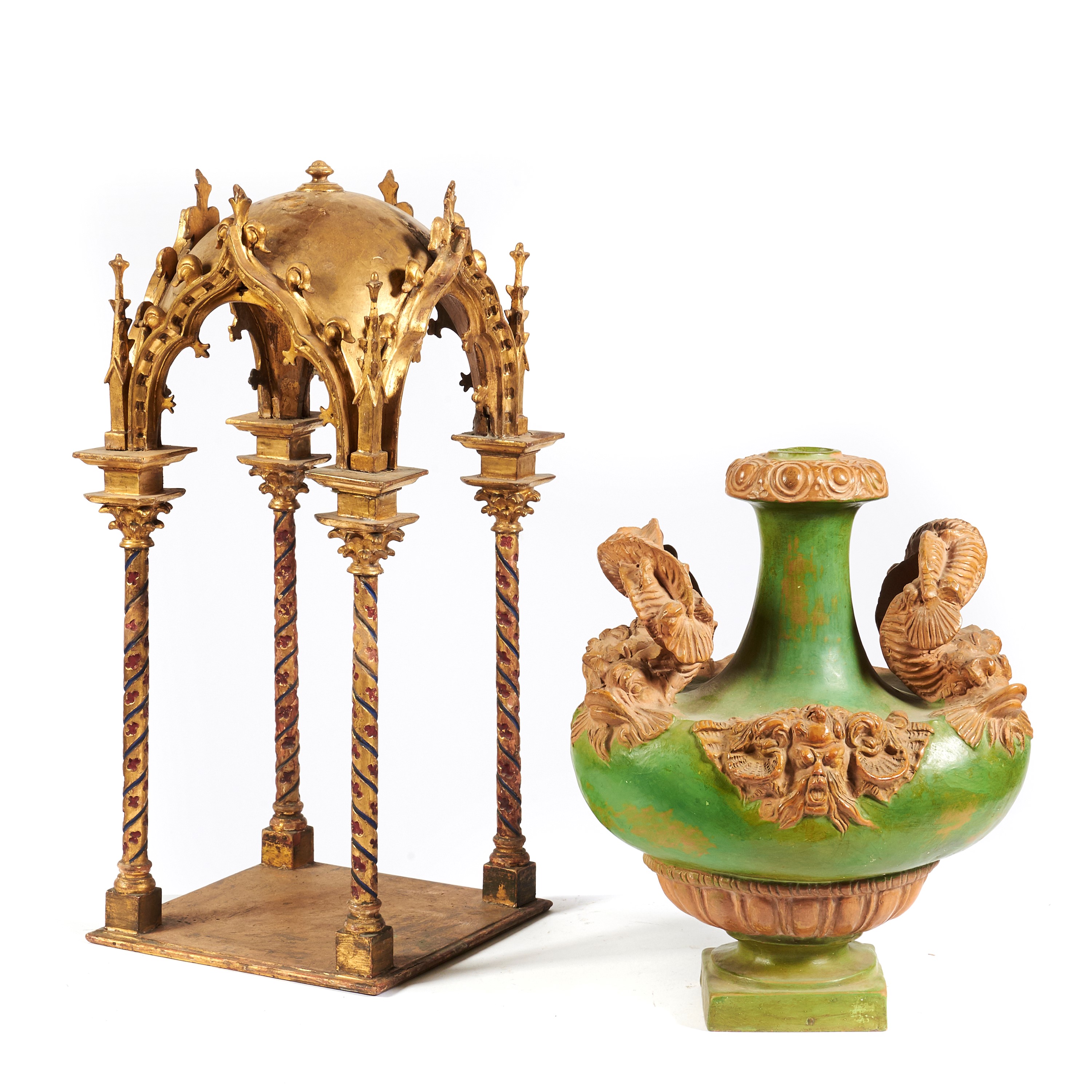 in terracotta smaltata nei toni del verde, anse con grottesche, ispirato ad un modello di G. B. Foggini, diam. cm 32 e alt. cm 40
