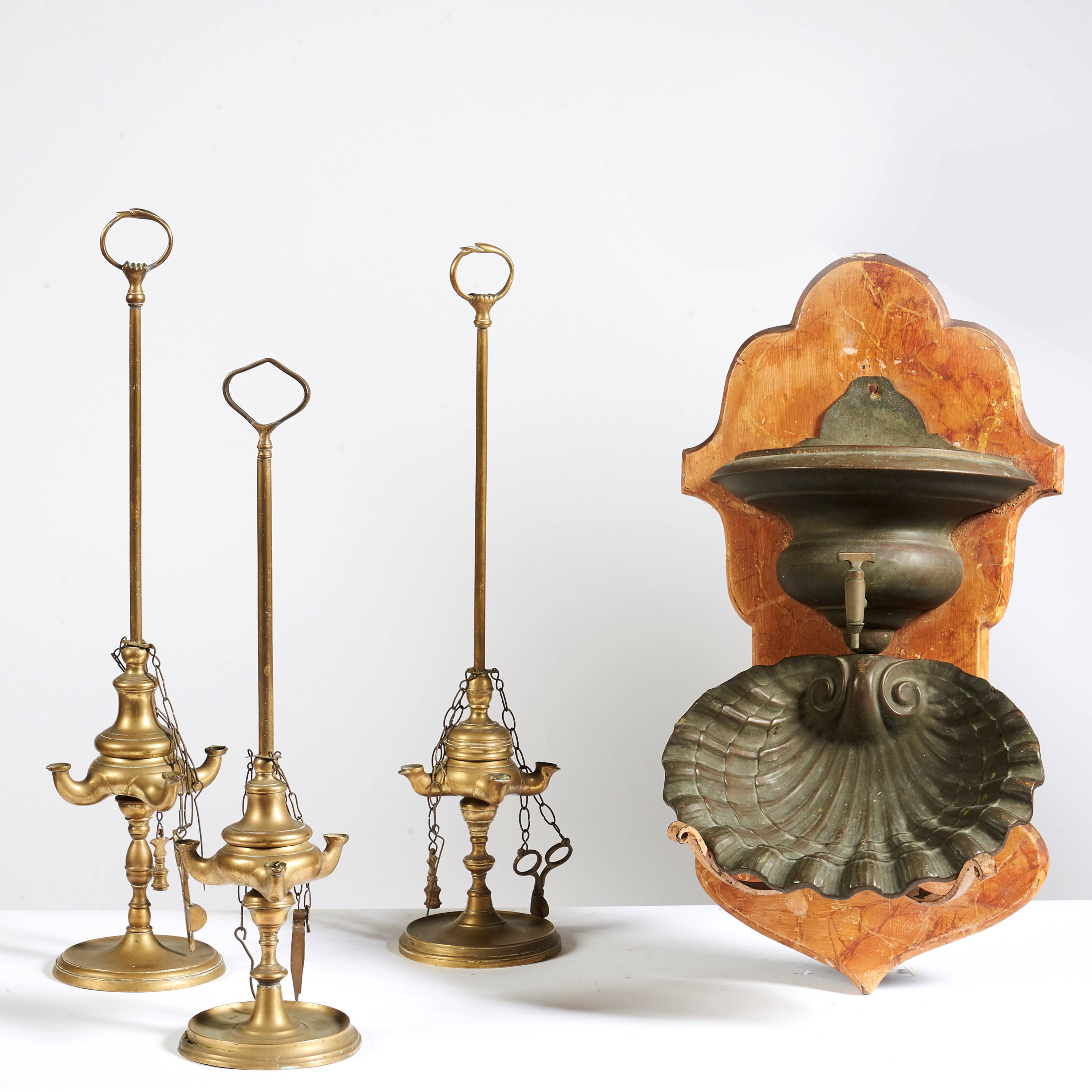 in ottone, alt. cm 60, cm 57,5 e cm 50,5, difetti