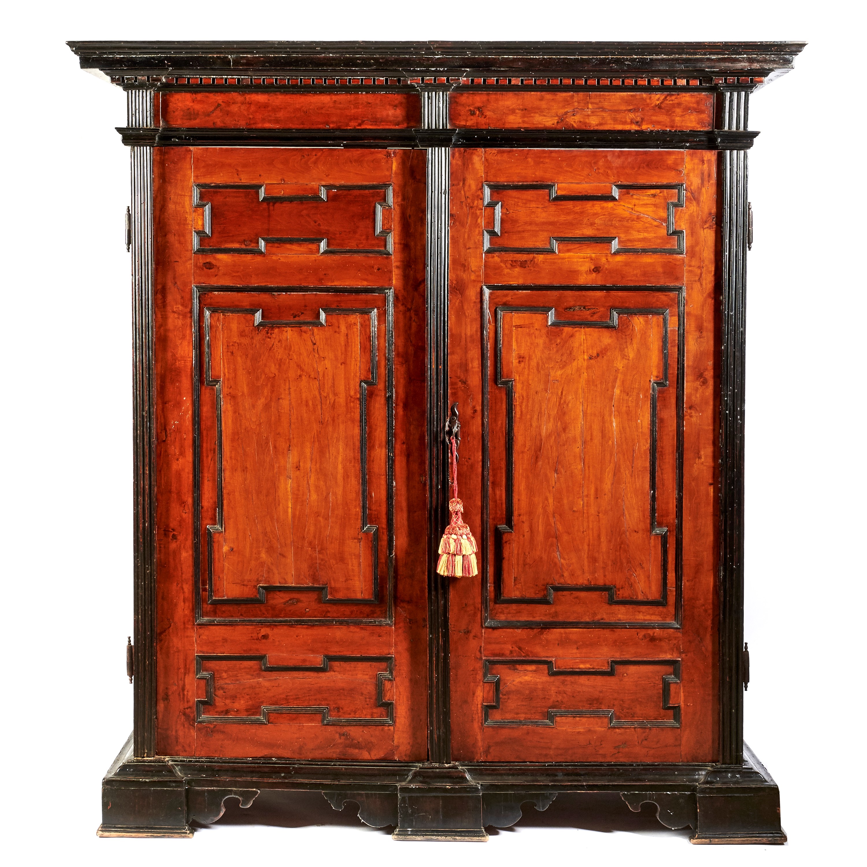 in noce con parti ebanizzate, fronte a due sportelli, cm L174xP82xH194