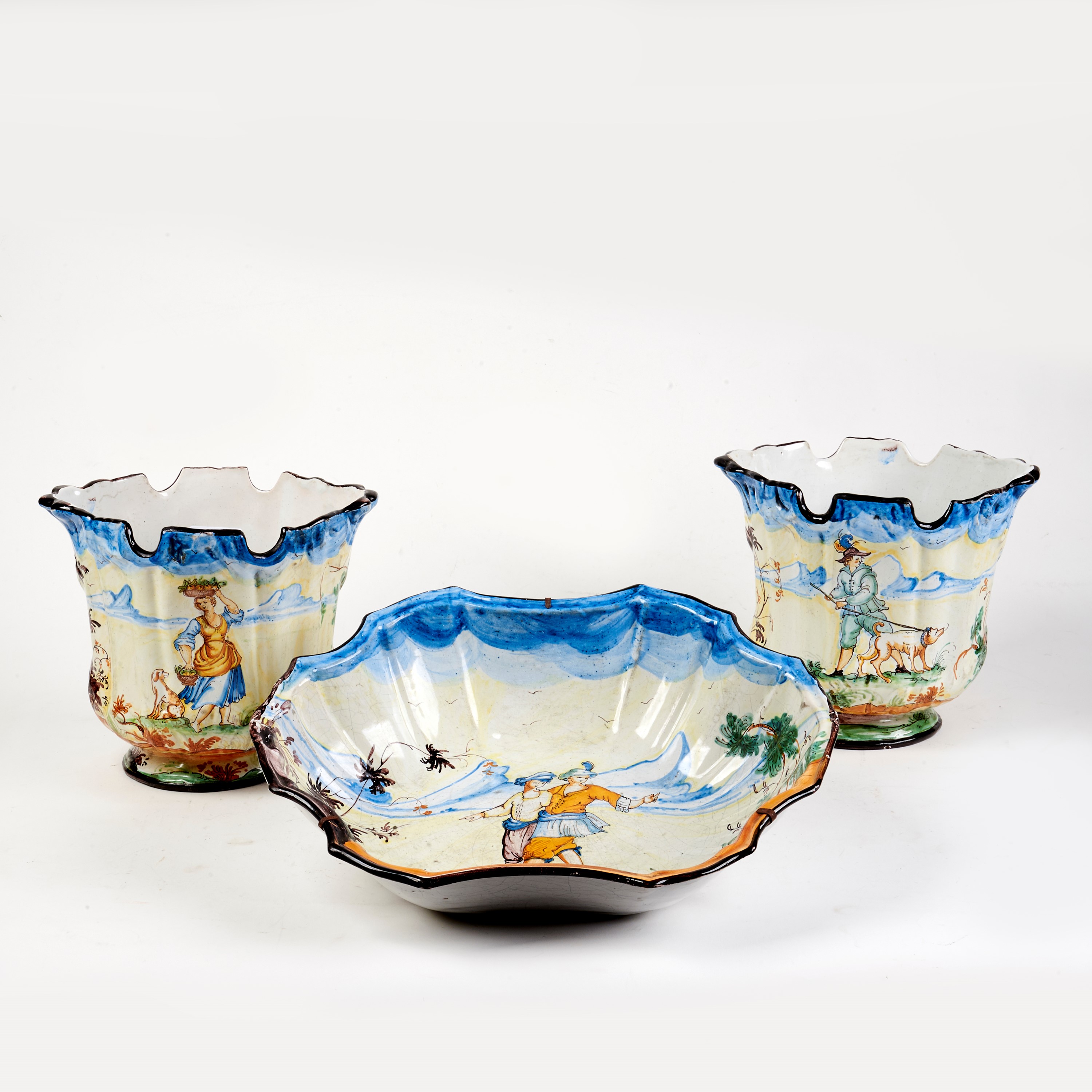 Bacile e coppia di cachepot, in stile Settecento, sec. XX