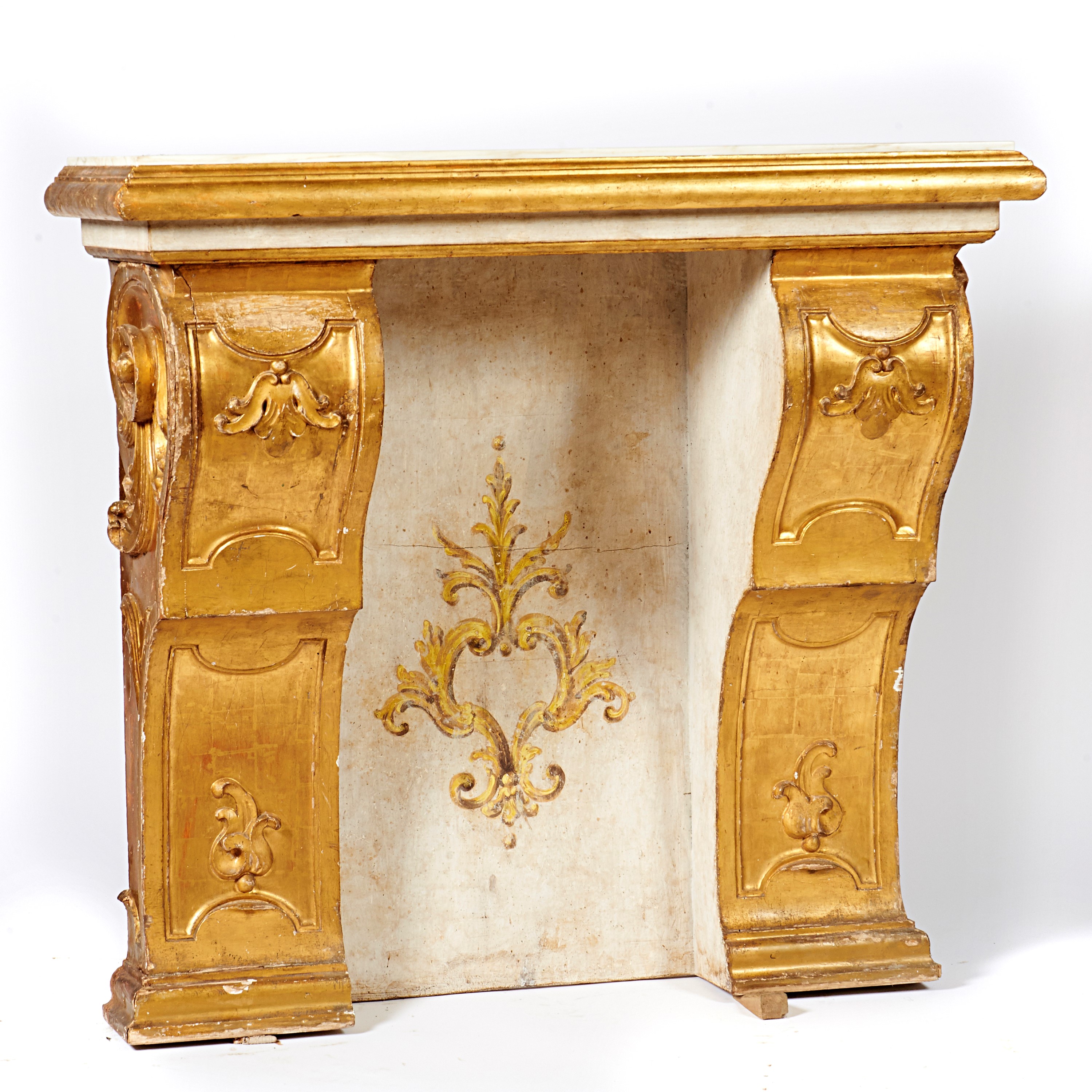 in legno intagliato e dorato, piano in marmo, non pertinente, cm L110xP43xH103