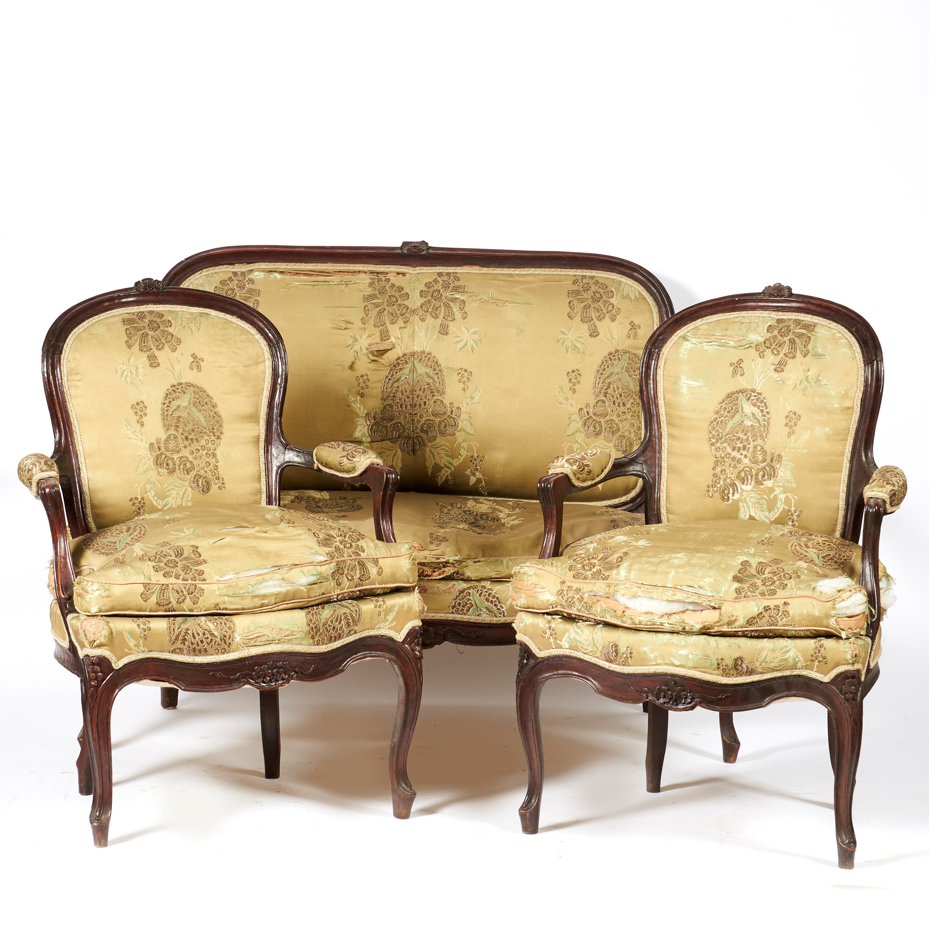 in legno intagliato e rivestito di stoffa, cm 125x60x90 e alt. cm 90, difetti