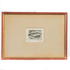 disegno su carta, cm 12x9 e litografia n. 71/125