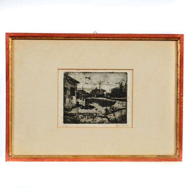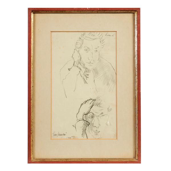 bozzetto a matita su carta e litografia 1/40, cm 33x20 e cm 20x16
