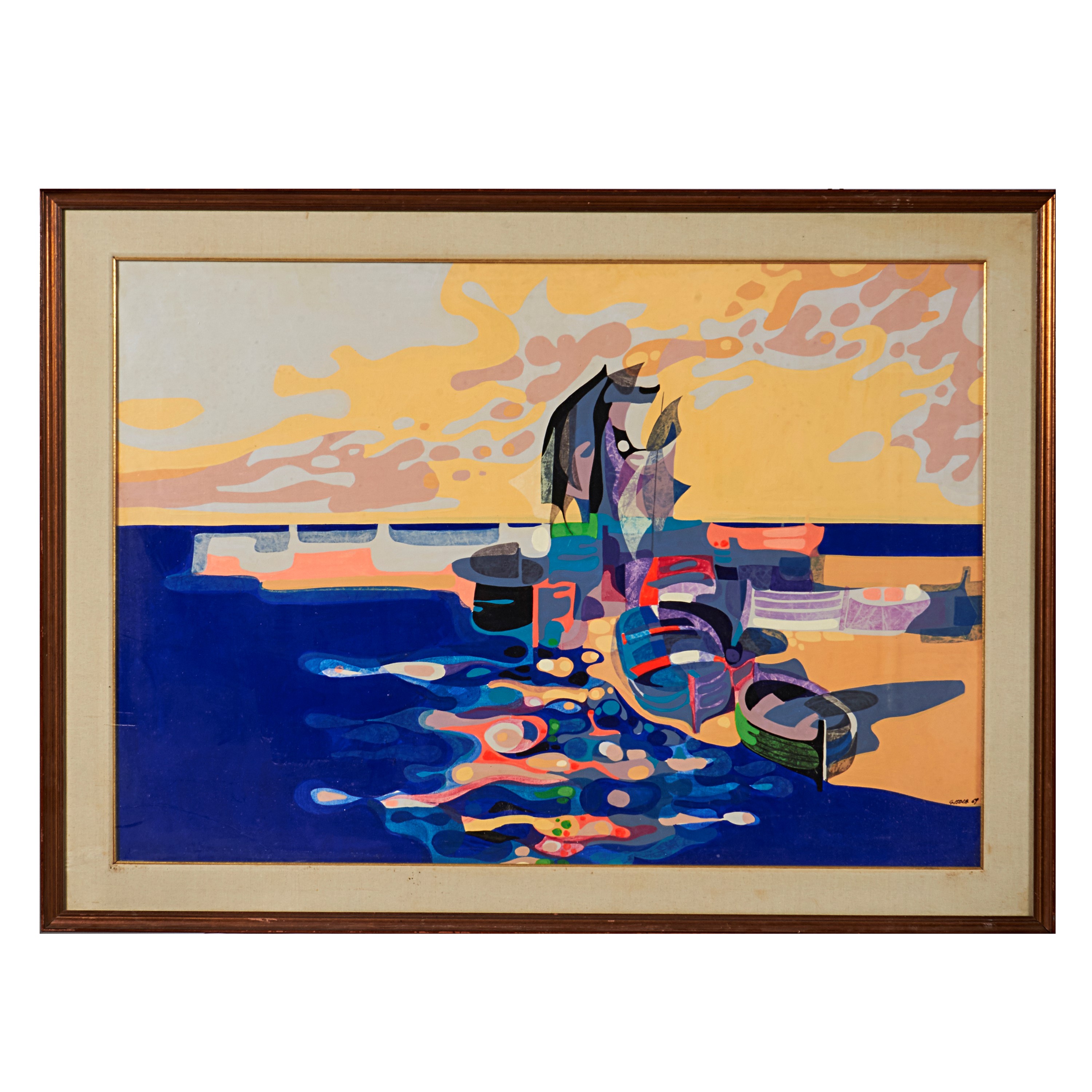 olio su tela, cm 70x100, firmato e datato 1969. Iscrizioni e autentica sul retro