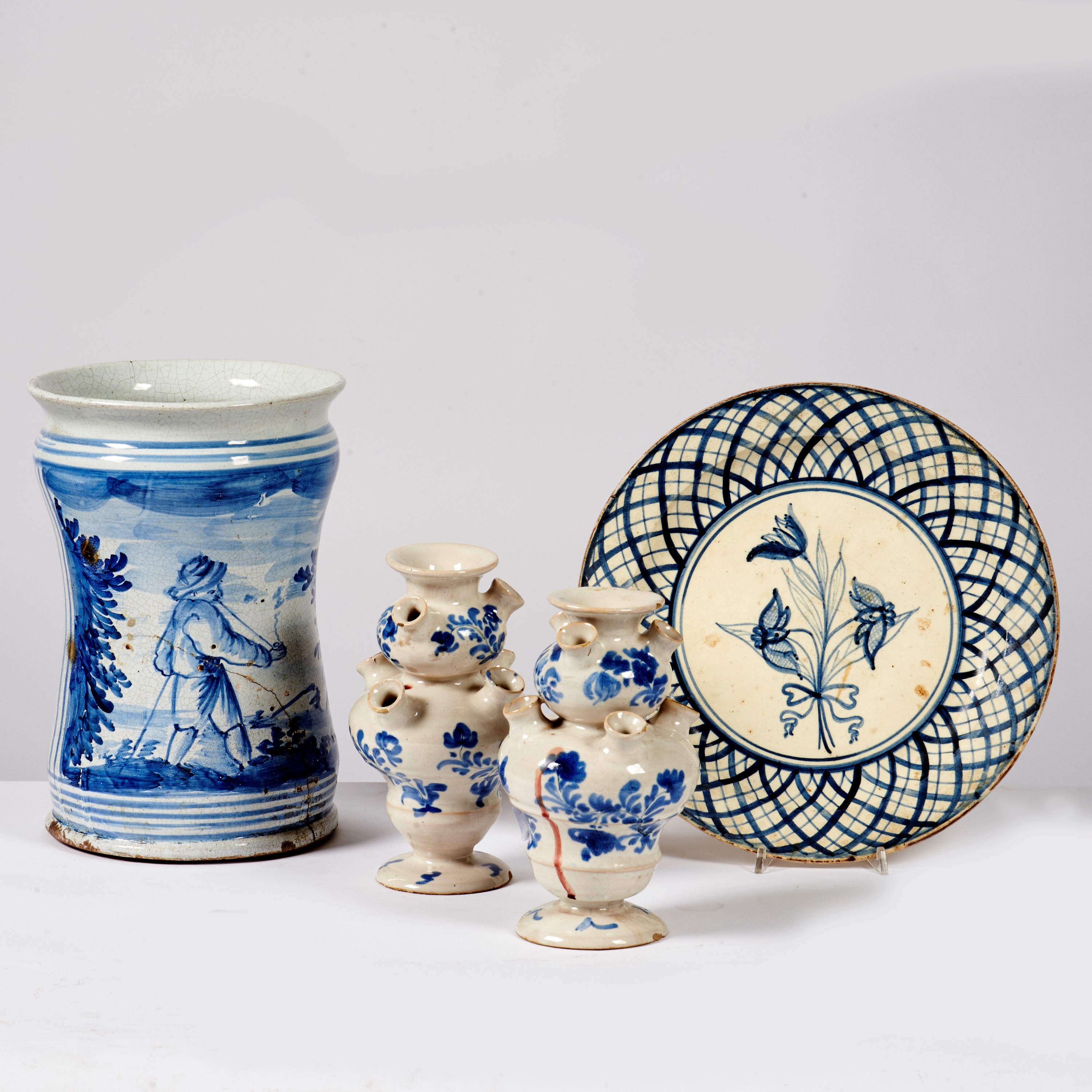 in maiolica dipinta bianco-blu, alt. cm 32, diam. cm 33, difetti