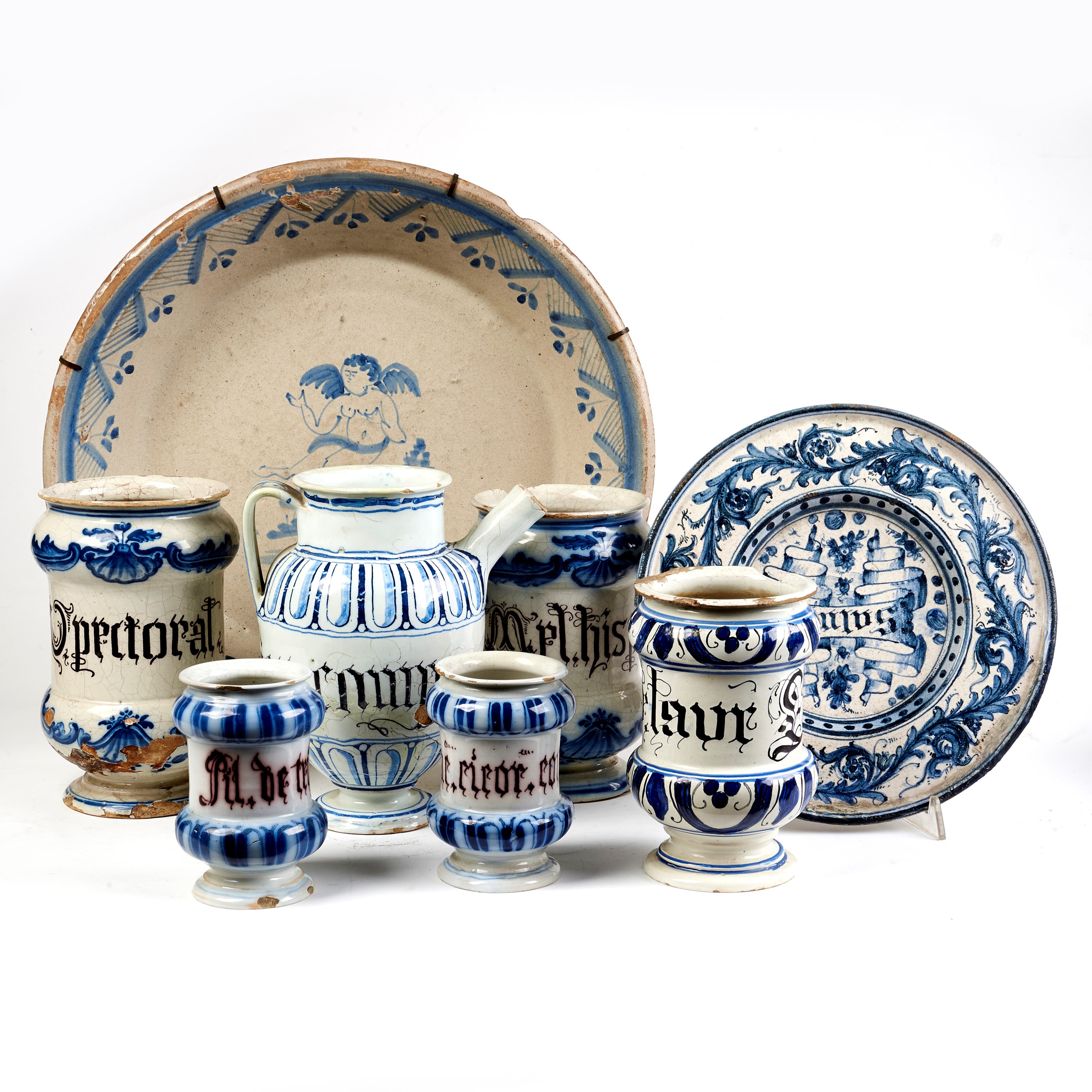 Gruppo di dieci tra alberelli, piatti e brocche, sec. XVIII