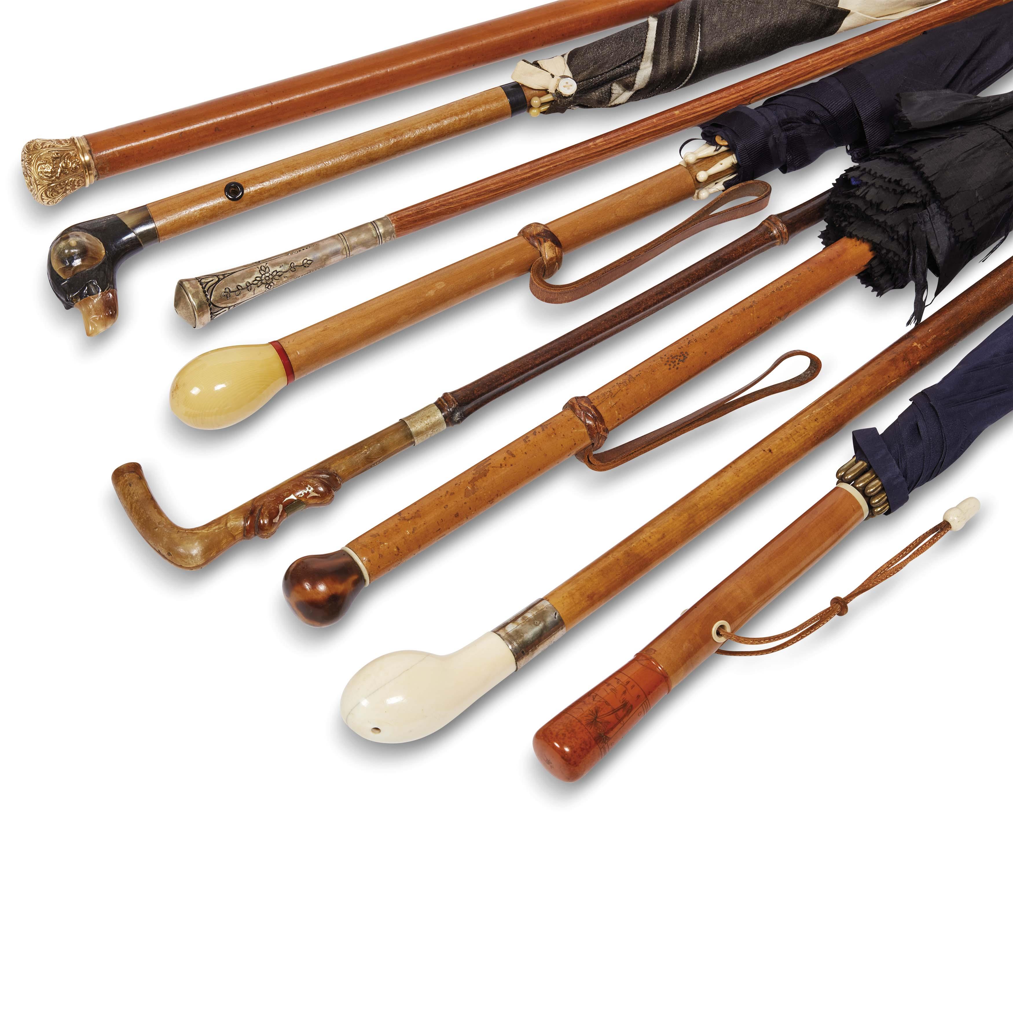 Gruppo di otto bastoni da passeggio e ombrelli, secc. XIX e XX