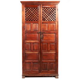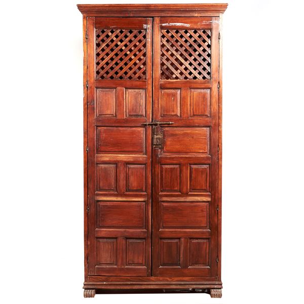 in legno a due sportelli sformellati e traforati, cm L110xP35xH210, difetti