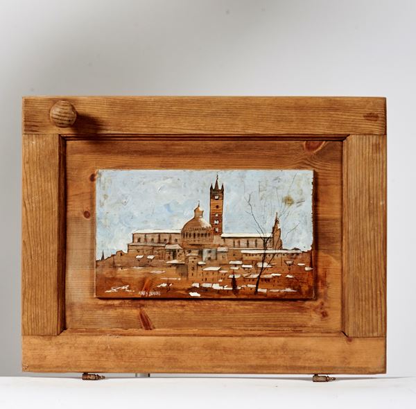 tre dipinti tempera su tavola, cm 40x53 e cm 66x40