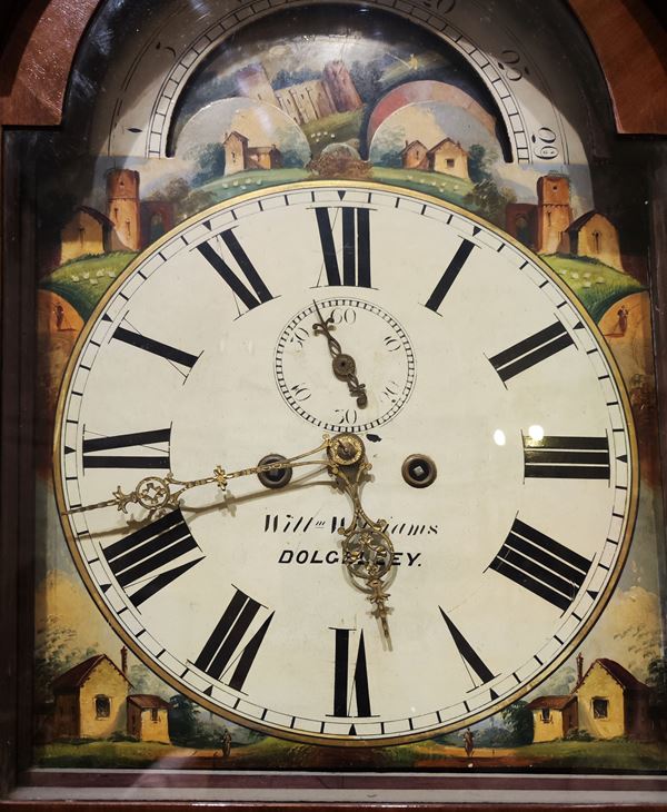 in noce intarsiato, mostra in metallo decorato, cm L64xP25xH240