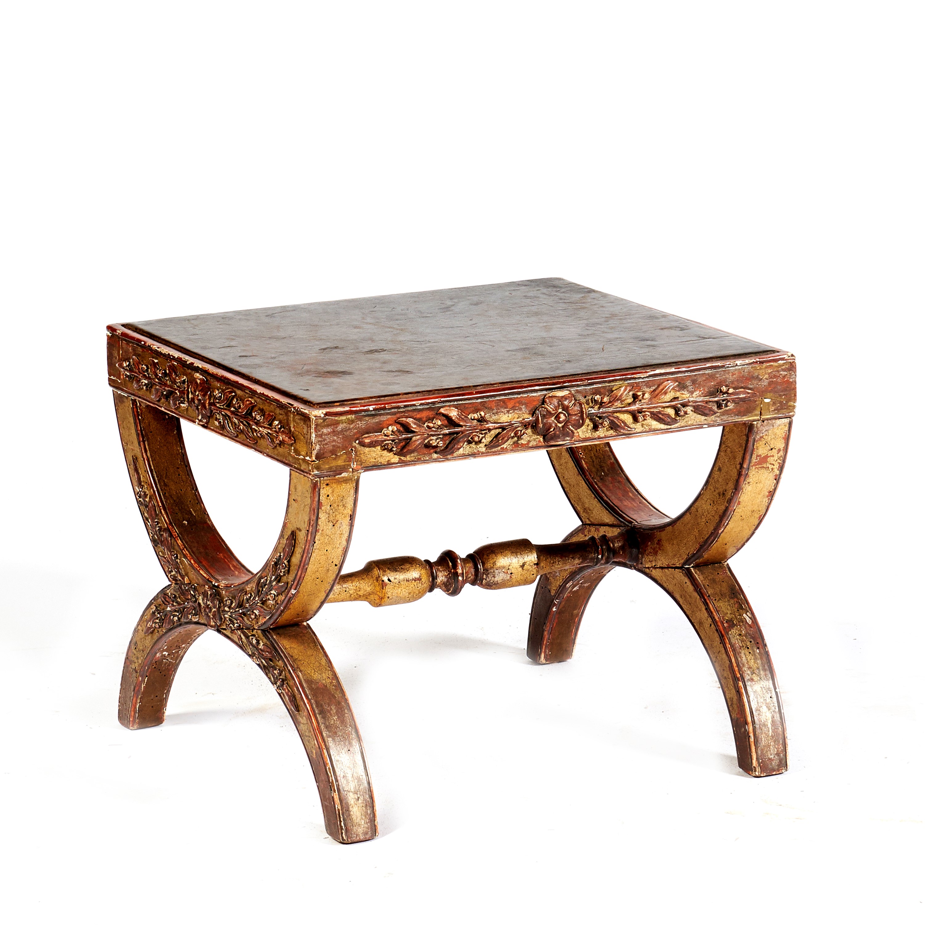 in legno dorato, laccato e intagliato, cm L46xP44xH37, difetti