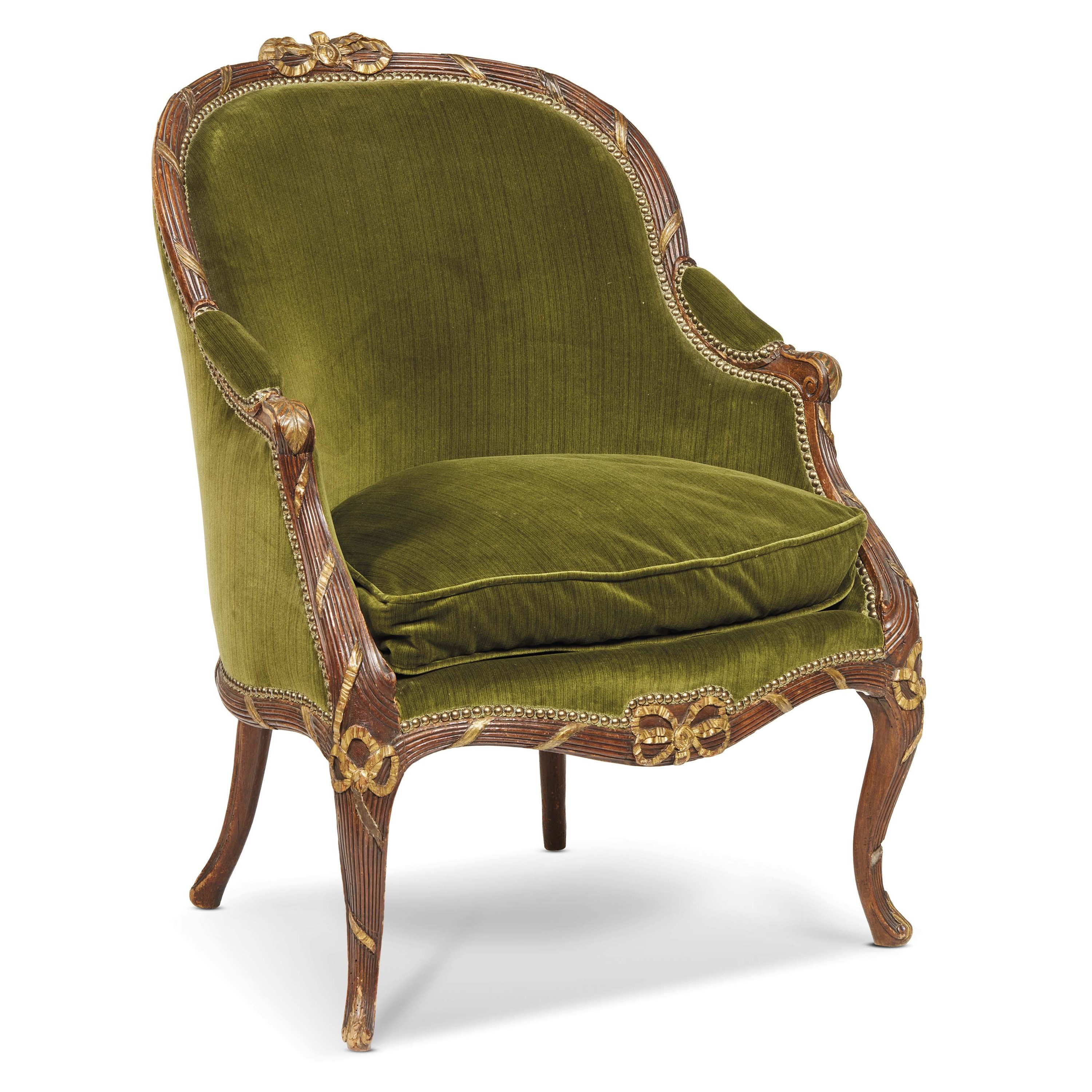 in noce intagliato ed in parte dorato, rivestita in velluto verde, alt. cm 94