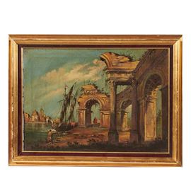coppia di dipinti ad olio su tela, cm 50x70