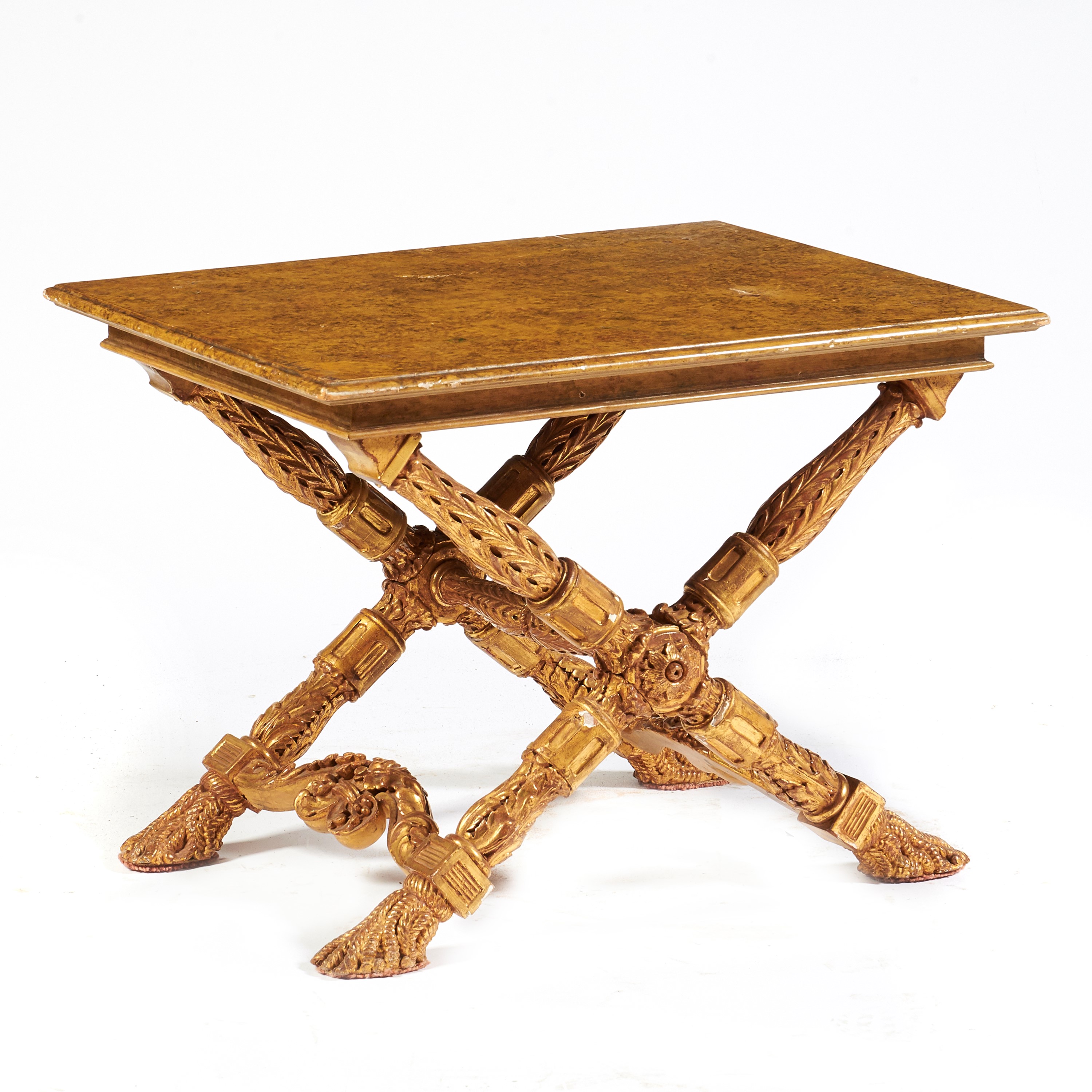 base in legno dorato e intagliato, piano rettangolare in finto marmo, cm L68xP52xH51, difetti