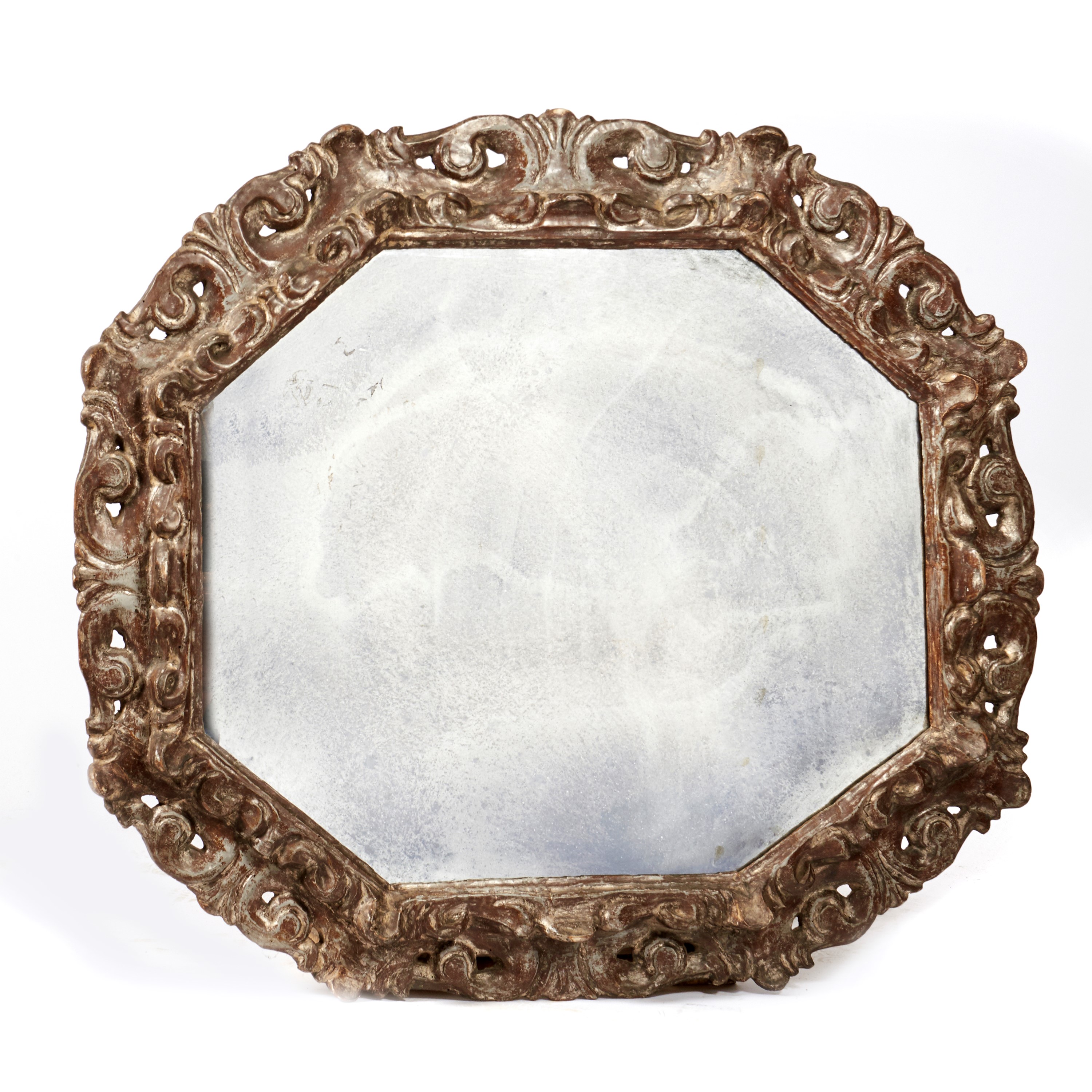 di forma ottagonale con cornice in legno intagliato e laccato, cm 106x97