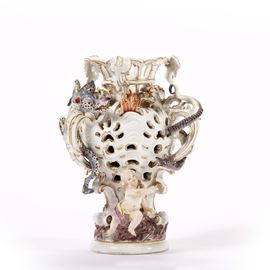 in porcellana dipinta in policromia, tre anse, alt. cm 24,5 difetti
