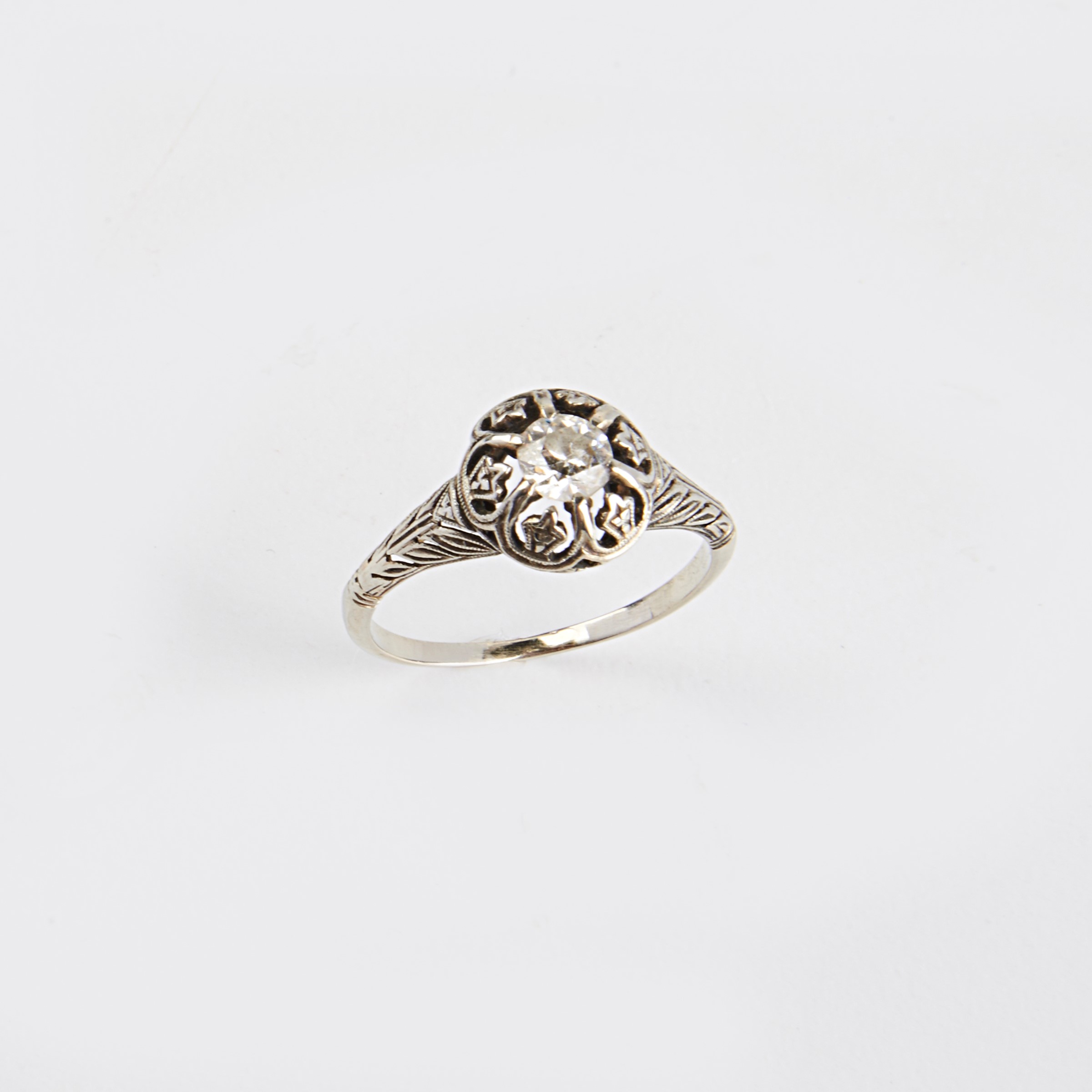 al centro un diamante di taglio antico per ct 0,33, diamante con rotture g 2,2 misura 15