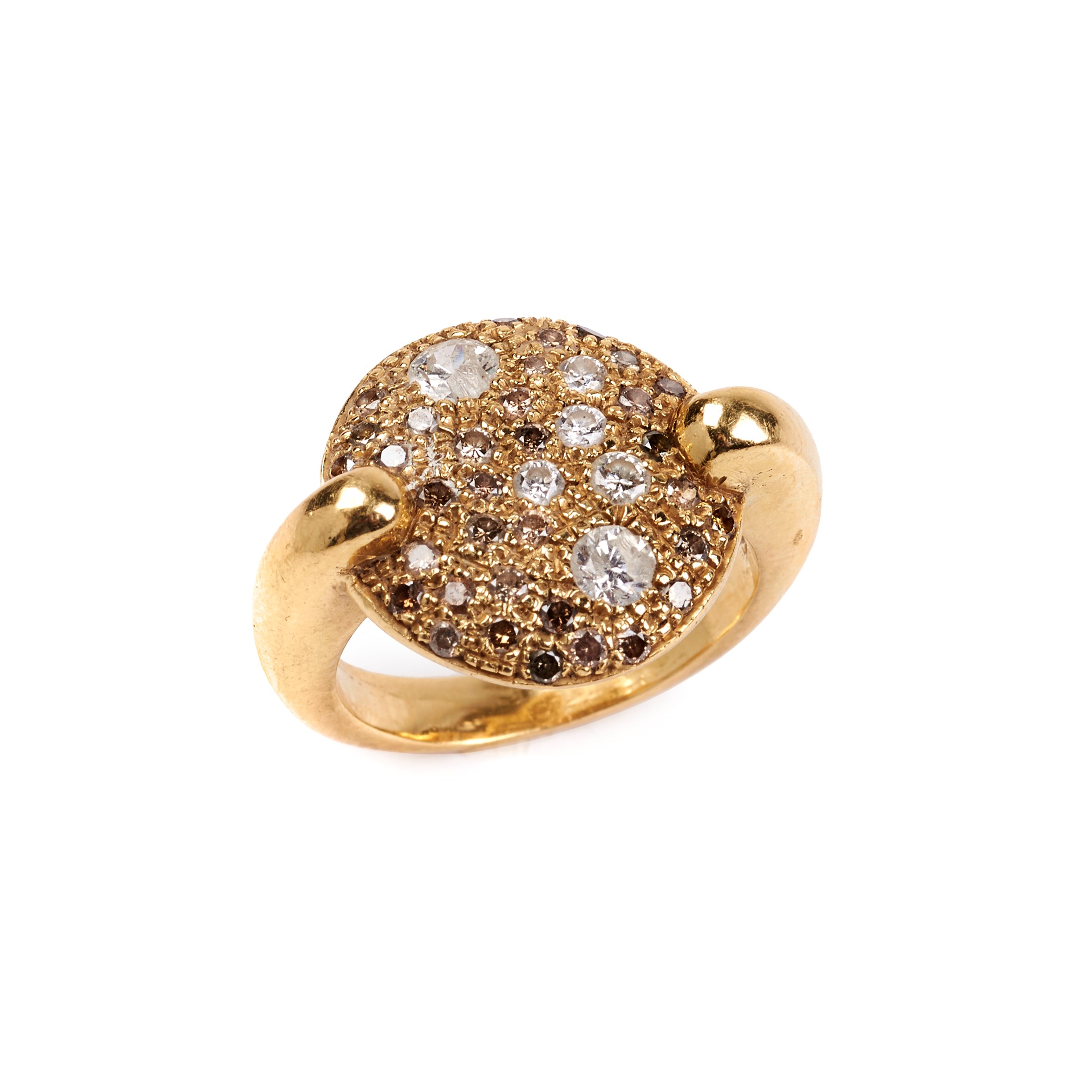 ANELLO IN ORO GIALLO 18KT, DIAMANTI E PIETRE PREZIOSE