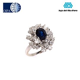 ANELLO IN PLATINO, ZAFFIRO E DIAMANTI