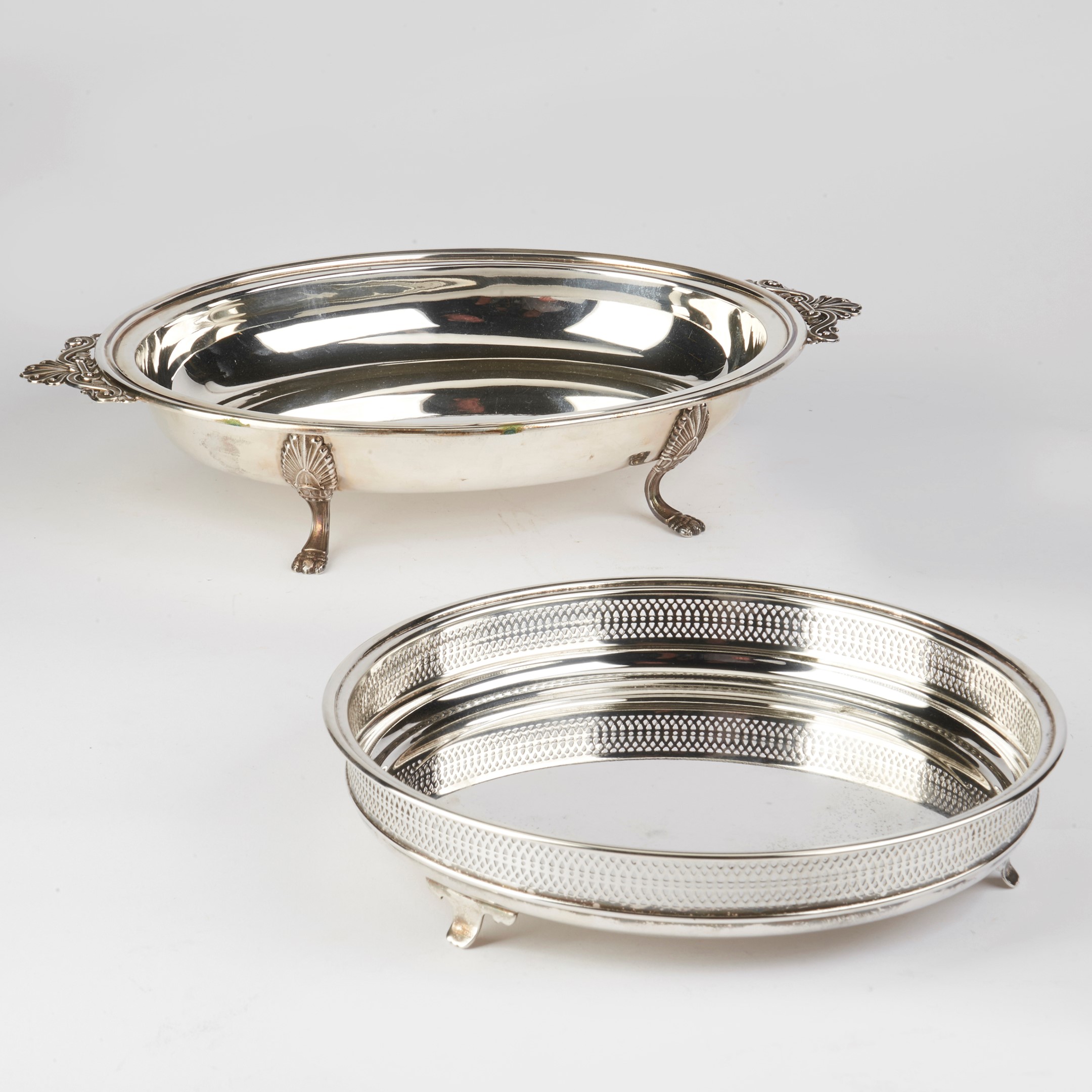 in argento di forma circolare con bordo rialzato traforato, diam. cm 25