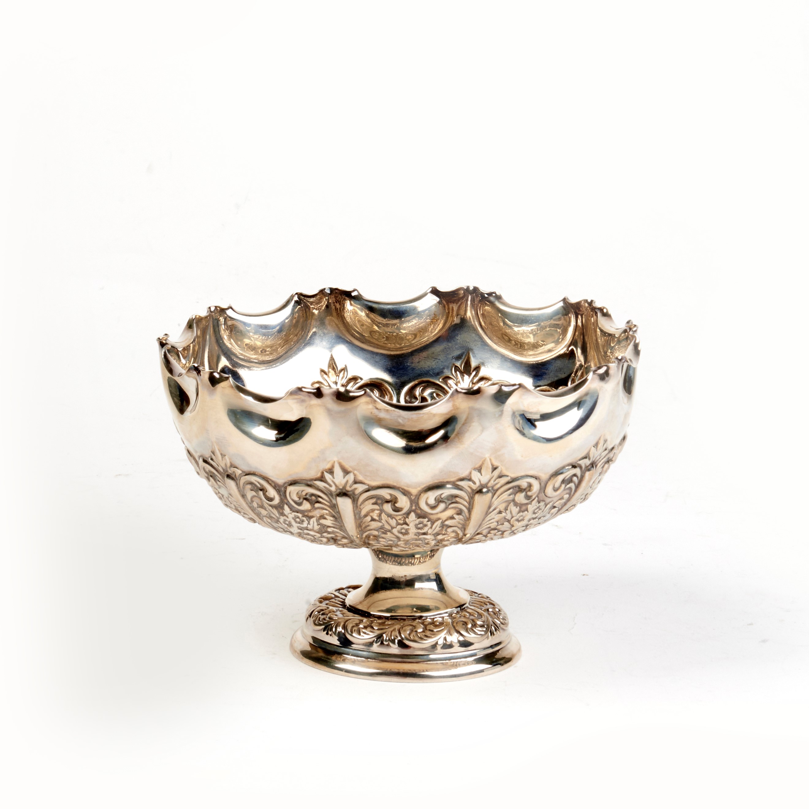 in argento sbalzato e cesellato, diam. cm 16, alt. cm 11, g 275