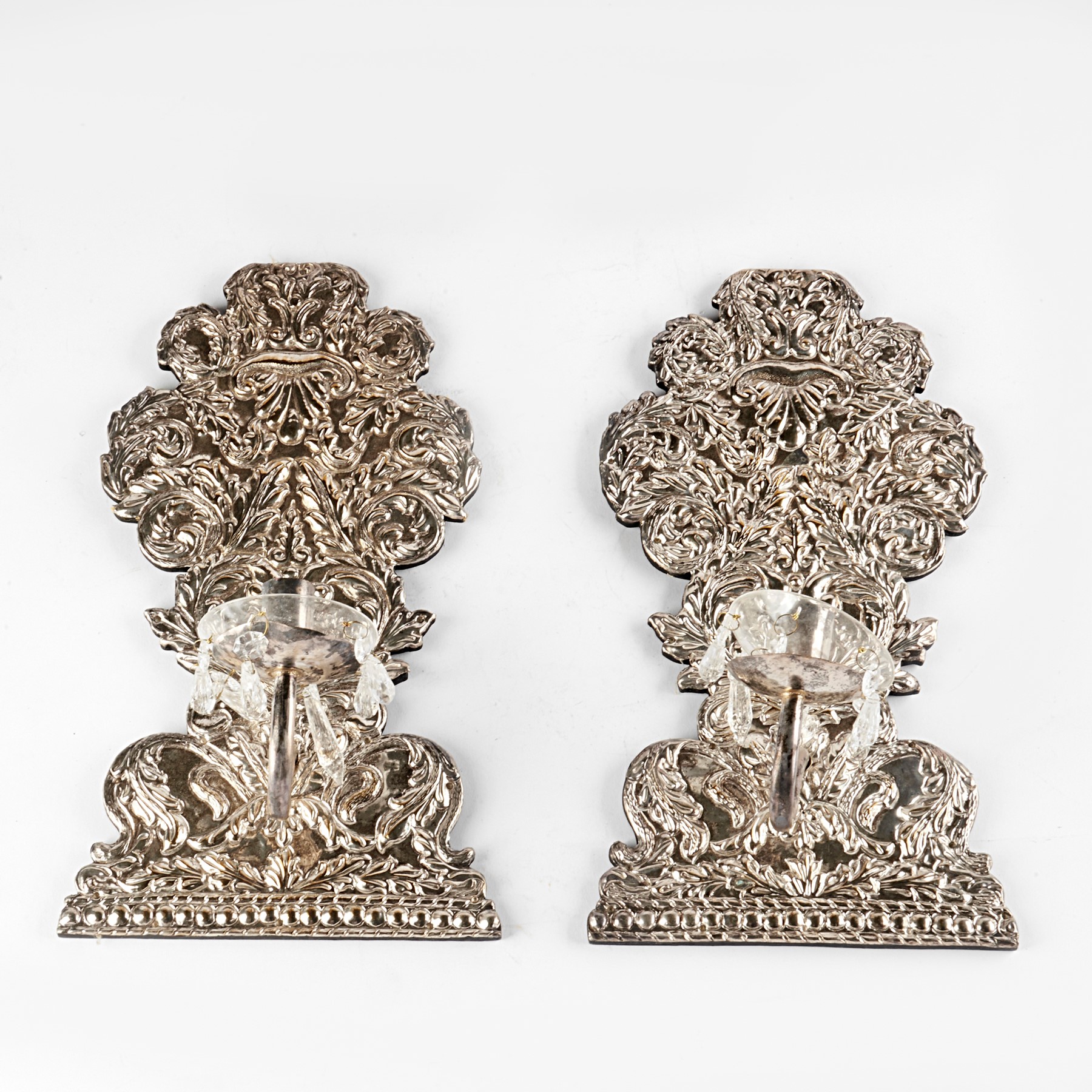 ad un portacandele ciascuno e rivestimento in metallo argentato, alt. cm 34