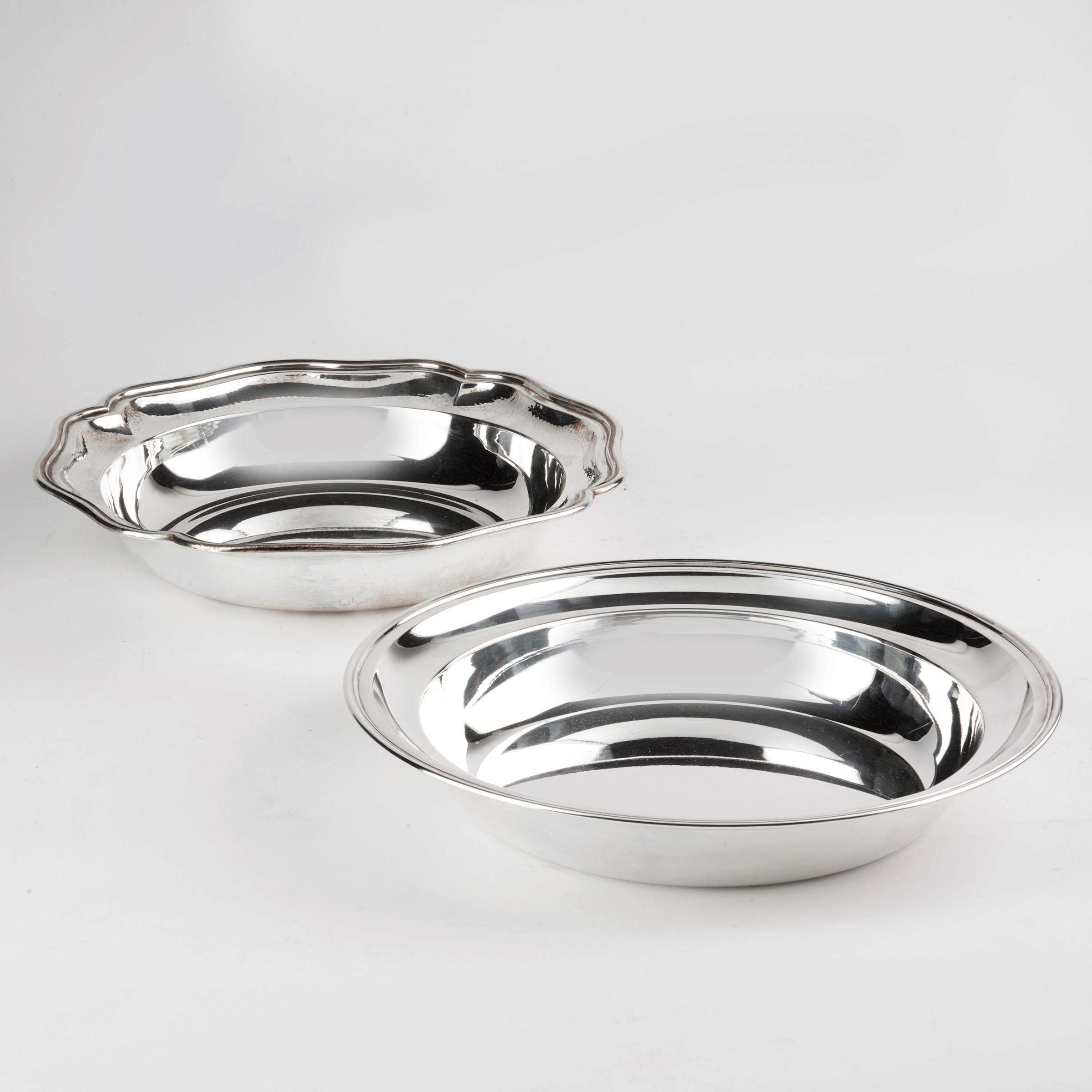 in argento, di forma circolare, di cui una sagomata, diam. cm 31, complessivi g 1300
