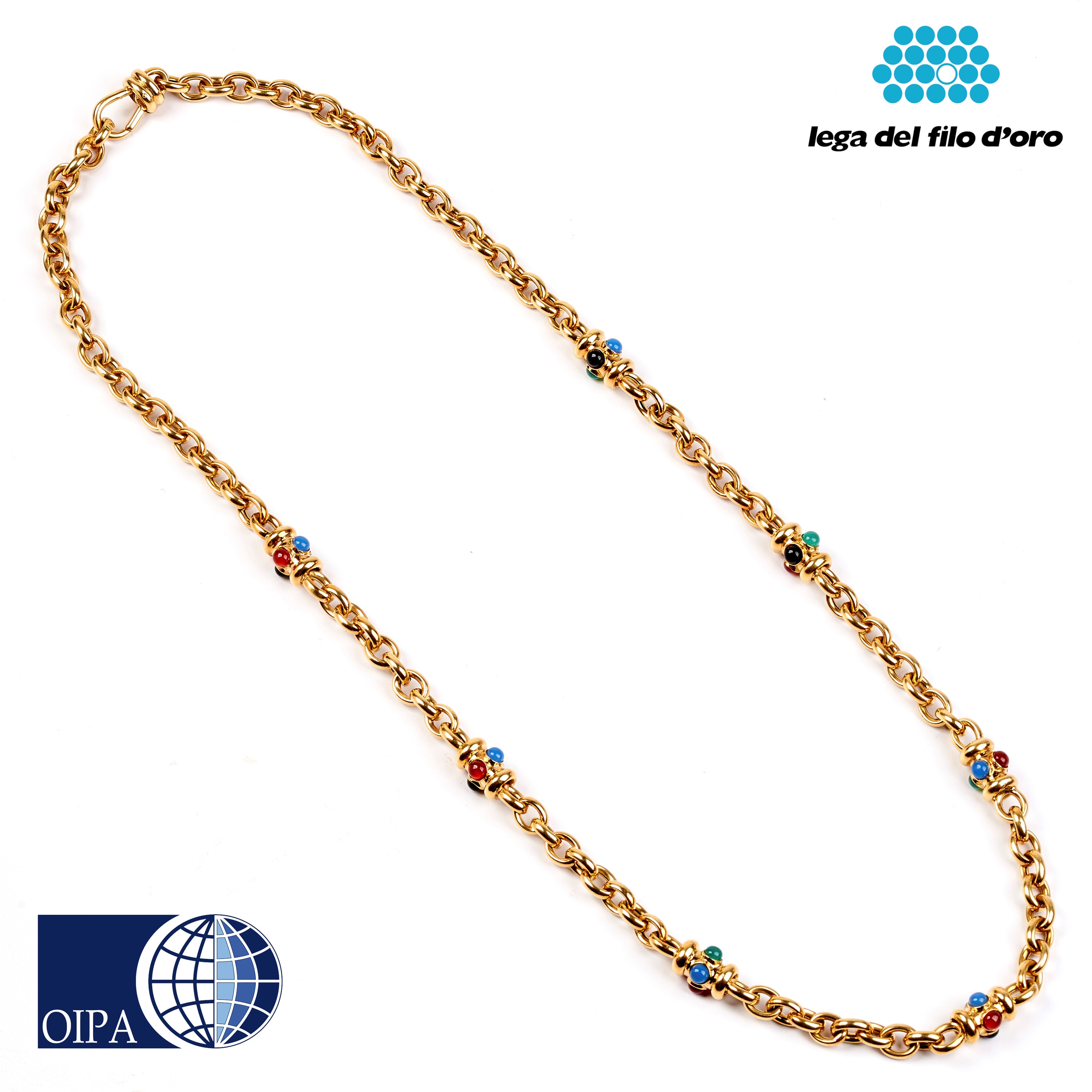 LUNGA COLLANA IN ORO GIALLO 18KT E PIETRE SEMIPREZIOSE