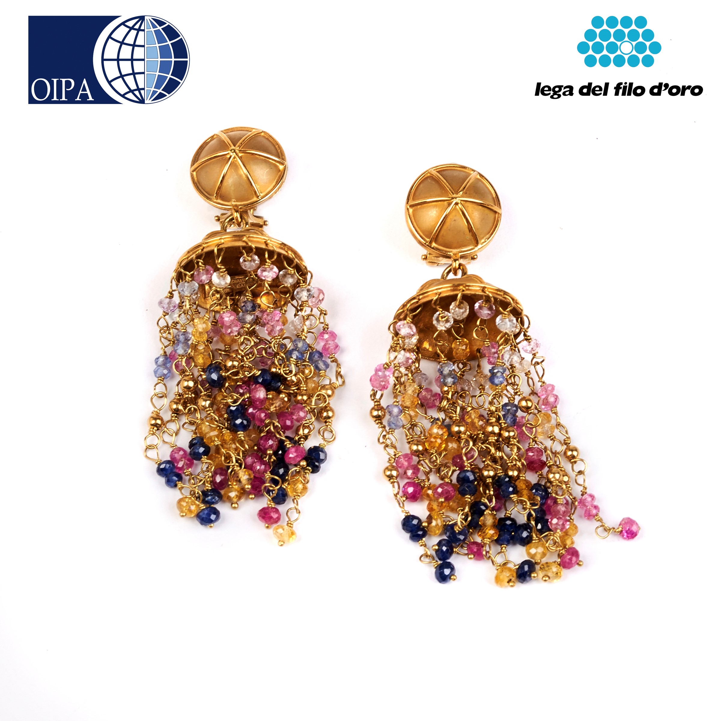 PAIO DI ORECCHINI PENDENTI IN ORO GIALLO E PIETRE