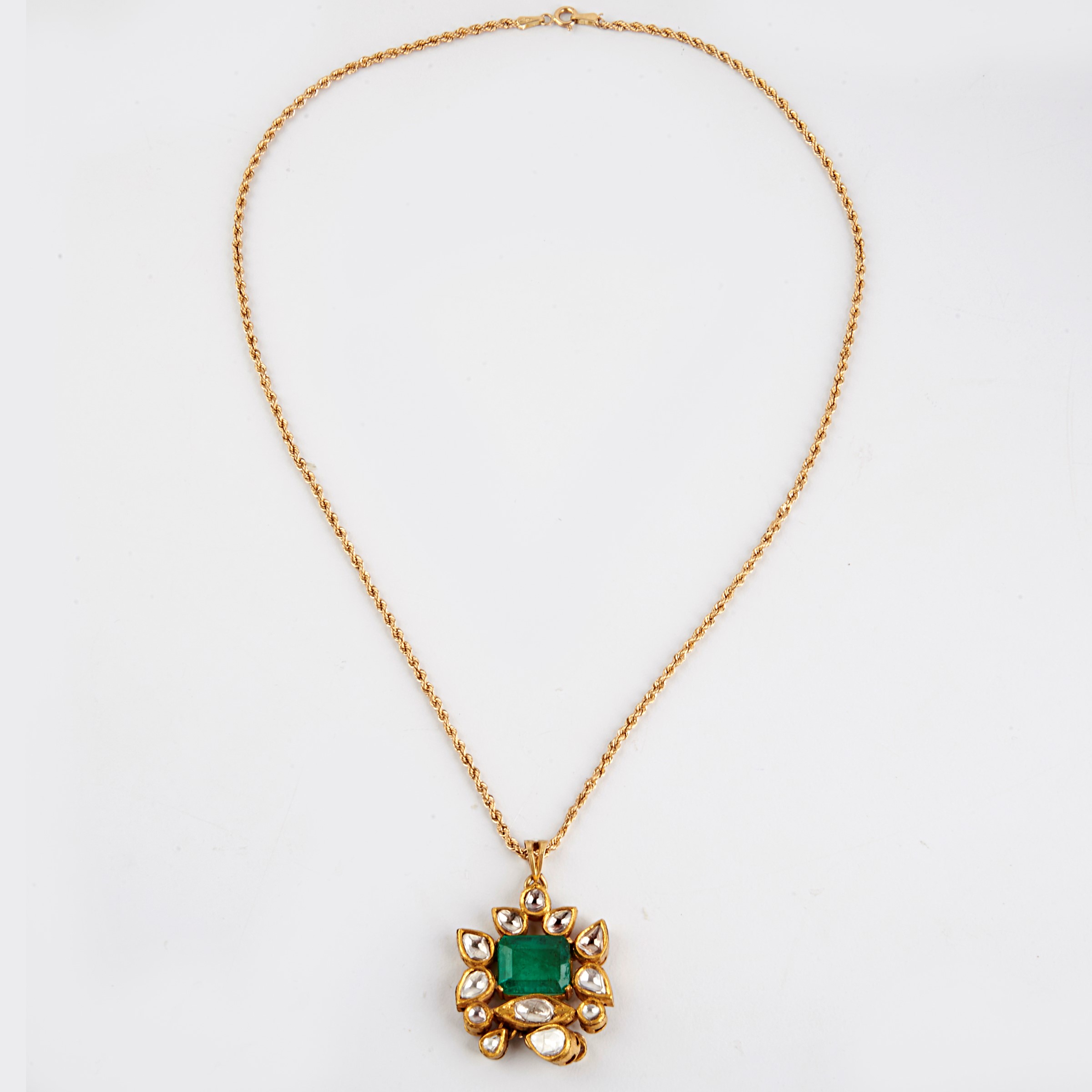 PENDENTE IN ORO GIALLO 18KT, SMERALDO E DIAMANTI