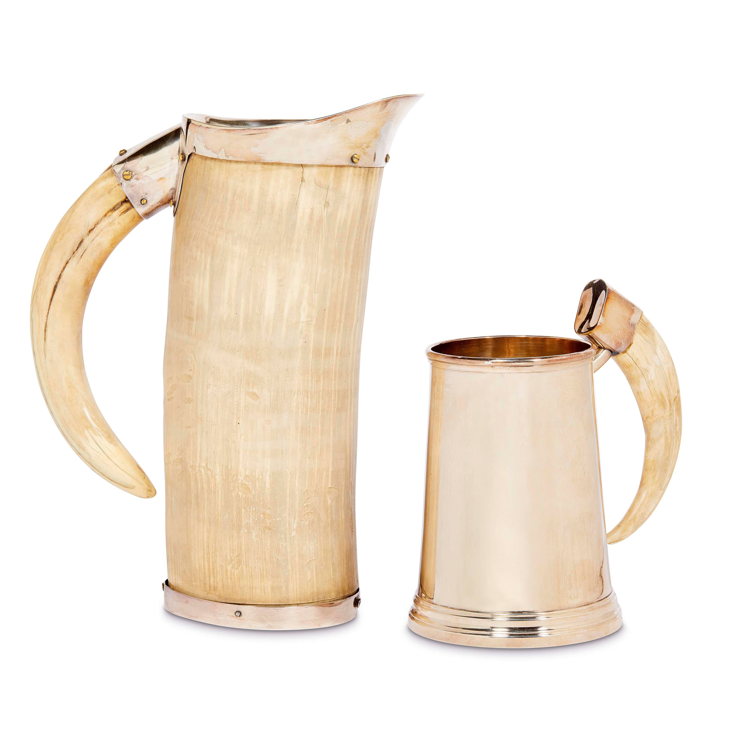 in corno con guarnizioni in metallo argentato, cm 30x22x10,5 e cm 19x16x11,7