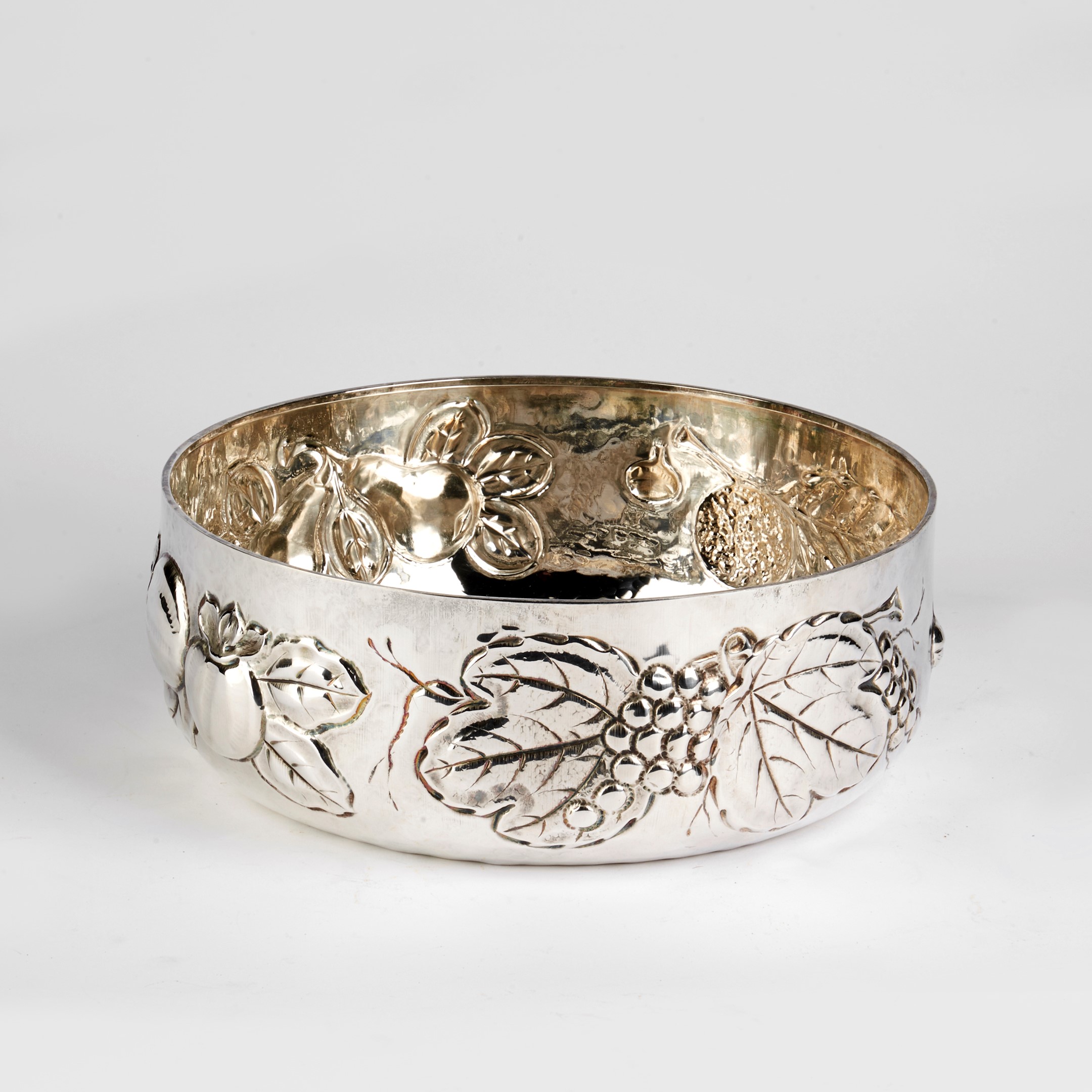 in argento sbalzato e frutti, diam. cm 26, alt. cm 9,5, g 785