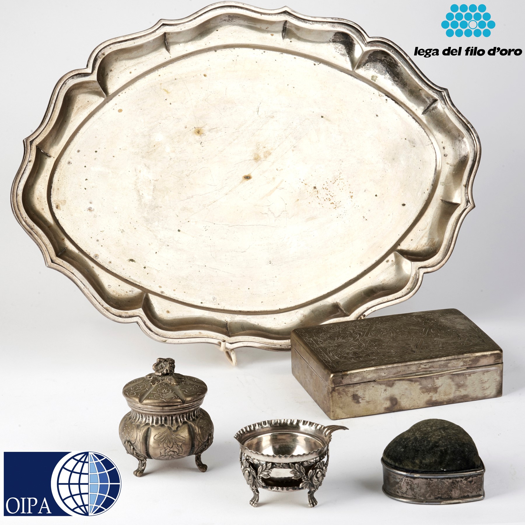 in argento di forma ovale sagomato, cm 44x30, g 765